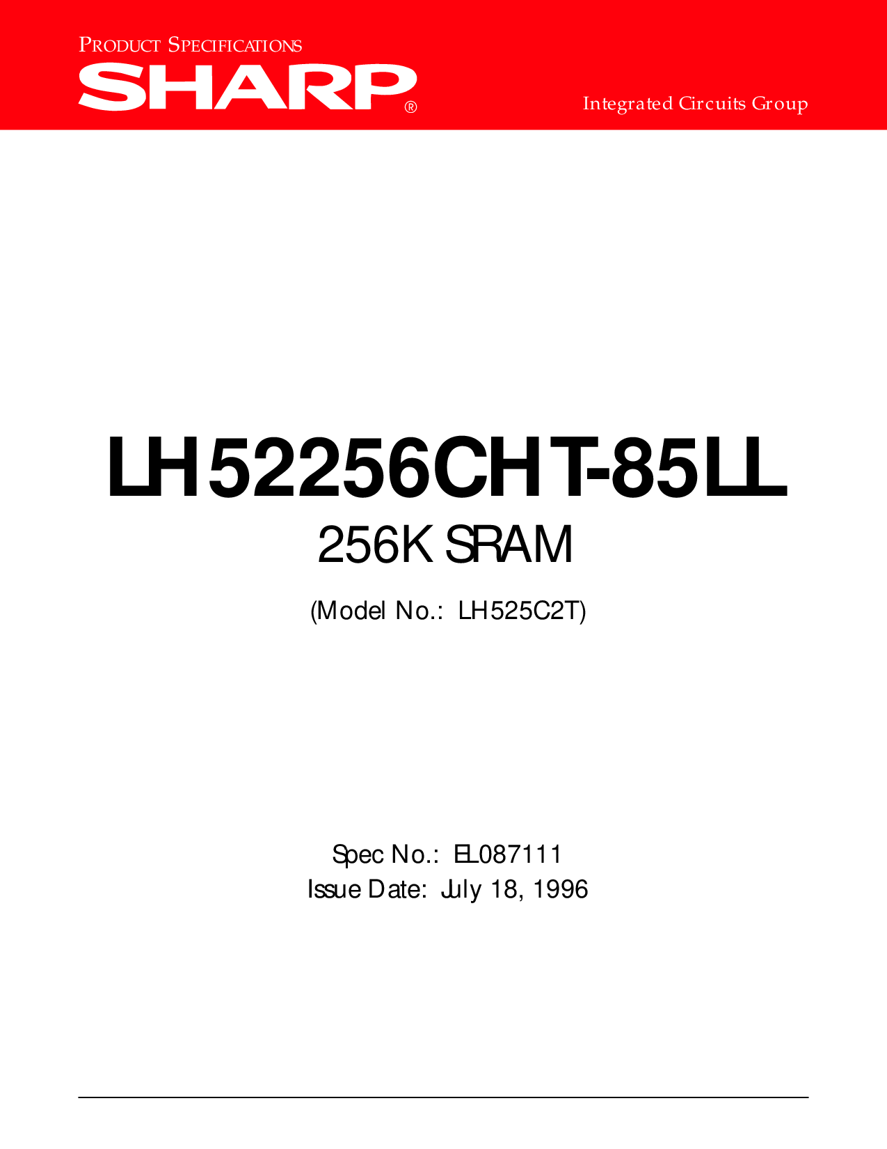 ® 综合 电路 集团 lh52256cht-85ll 256k sram (型号 否.: lh525c2t) 规格 否.: el087111 问题 日期: july 18, 1996 p RODUCT s 具体情况 | |