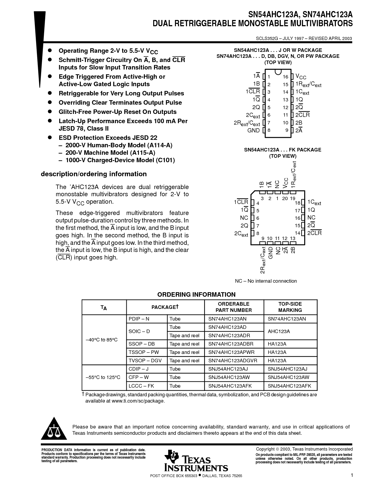 sn54ahc123a, sn74ahc123a