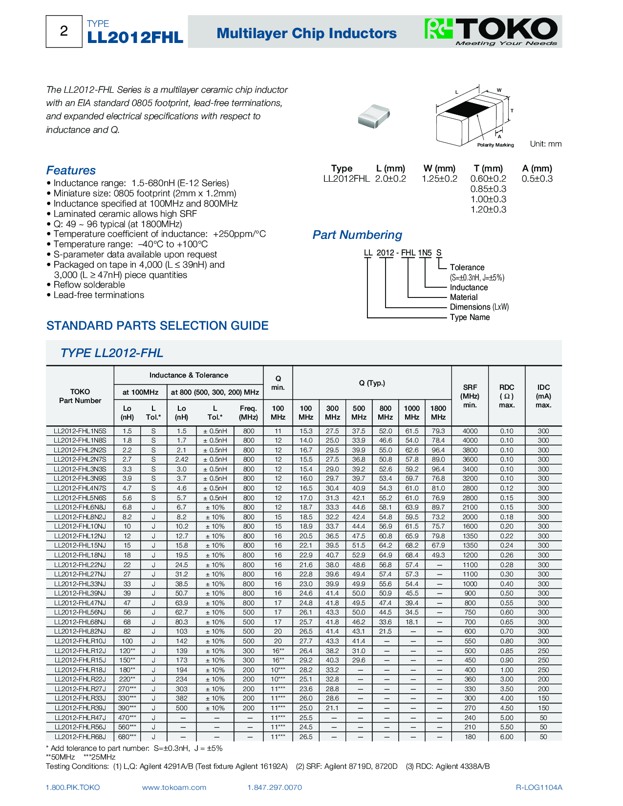 浏览型号LL2012-FHLR22J的Datasheet PDF文件第2页