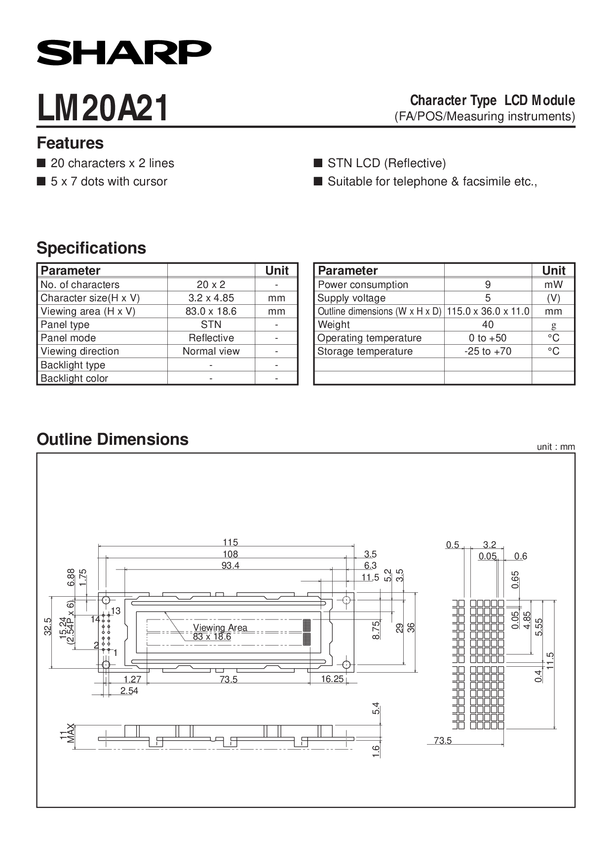 否. 的 字符 20 x 2 - 电源 消费 9 mW