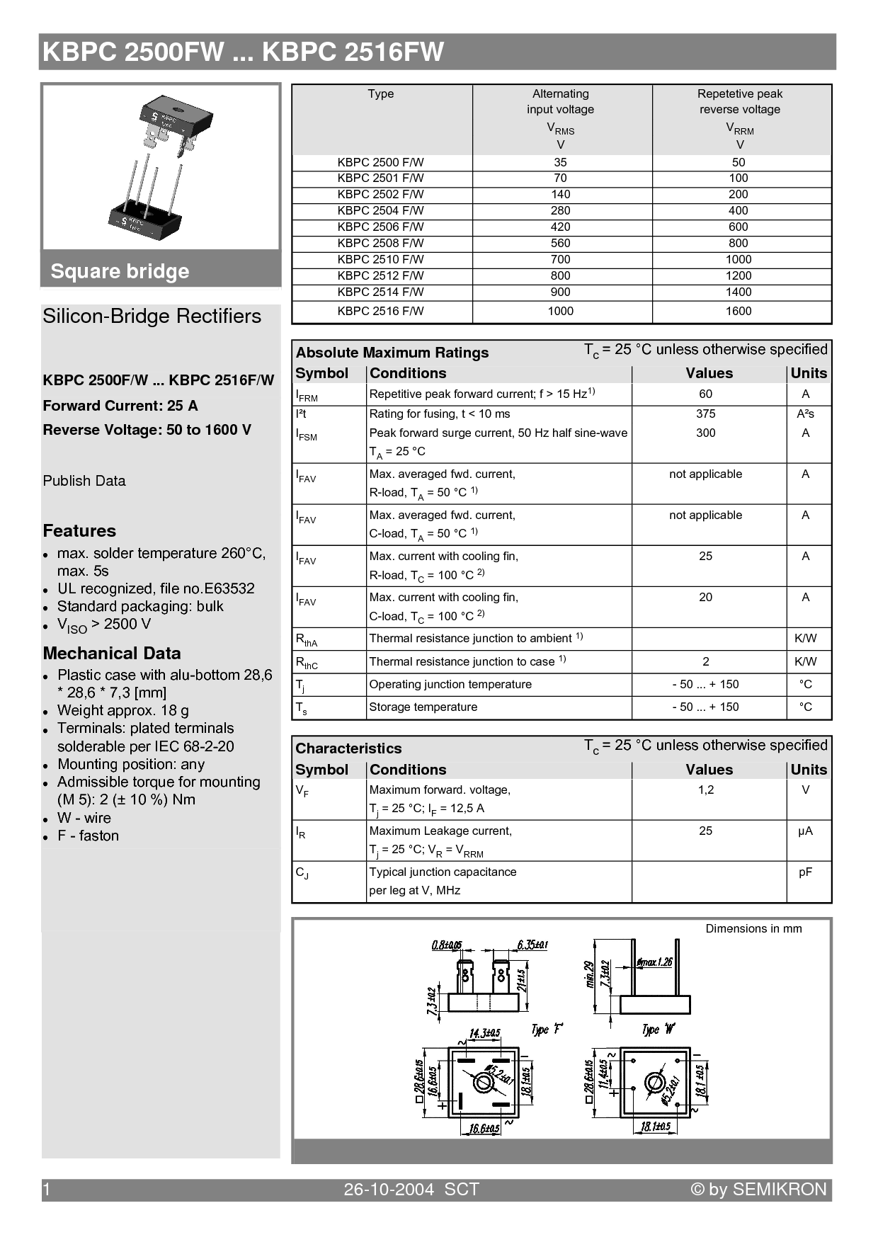 KBPC 2500FW ... KBPC 2516FW