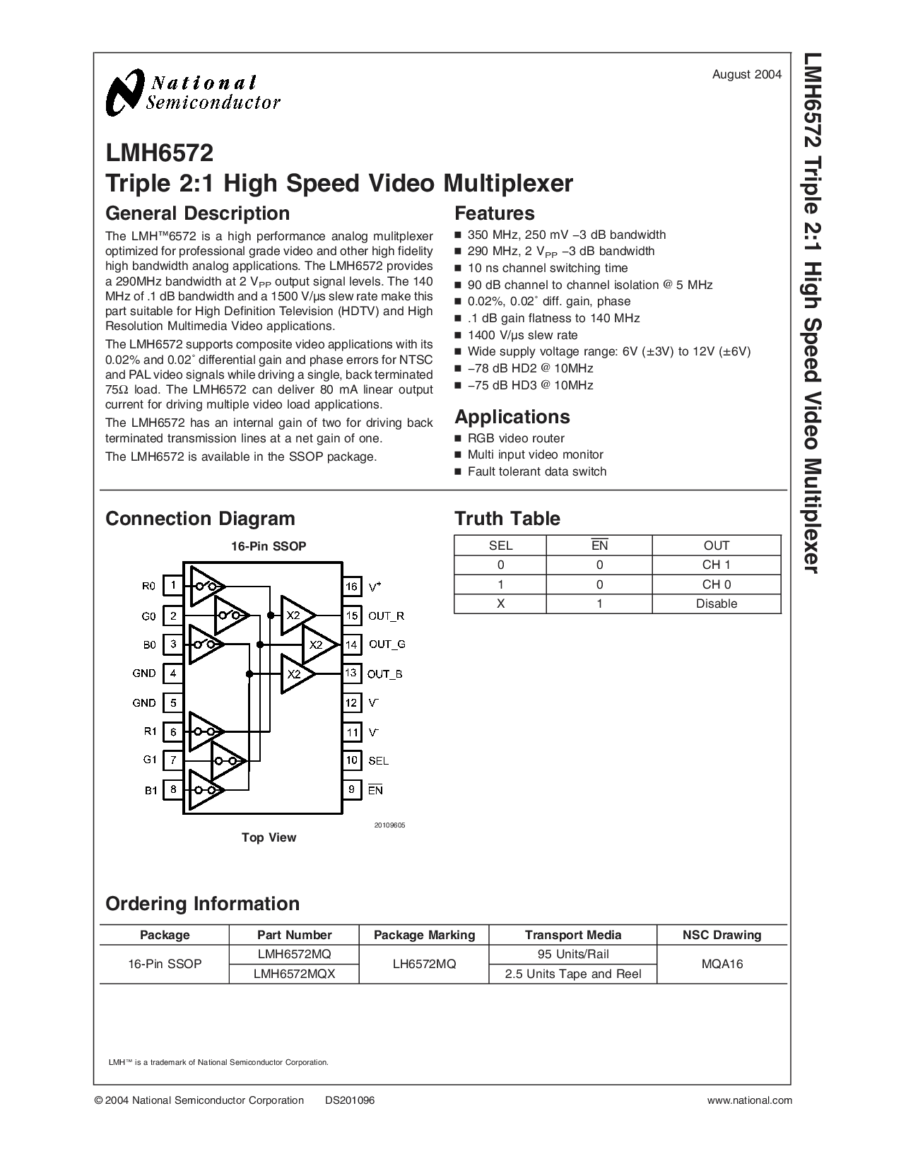 浏览型号LMH6572MQX的Datasheet PDF文件第2页