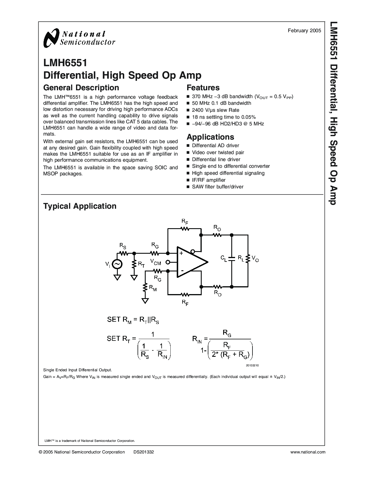 © 2005 国家 半导体 公司 DS201332 www.国家.com