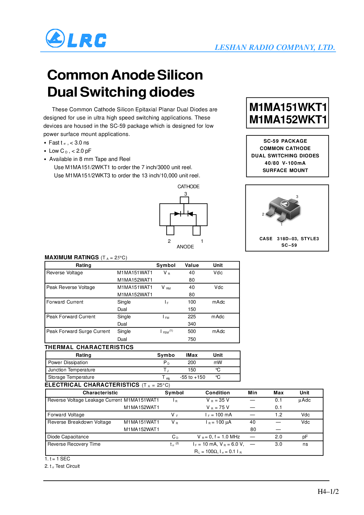 浏览型号M1MA152WKT1的Datasheet PDF文件第2页