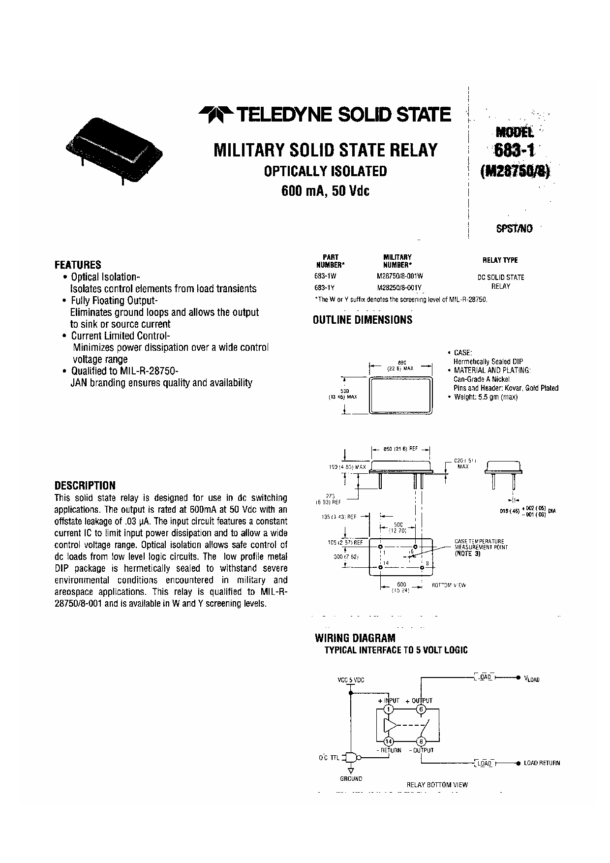 MILITARY SOLID STATE RELAY OPTICALLY ISOLATED