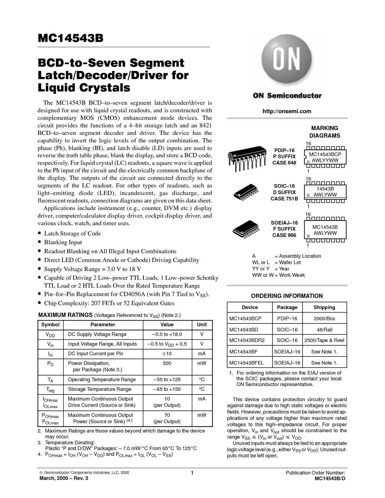 MC14543BFEL SOEIAJ–16 请参见 备注 1.