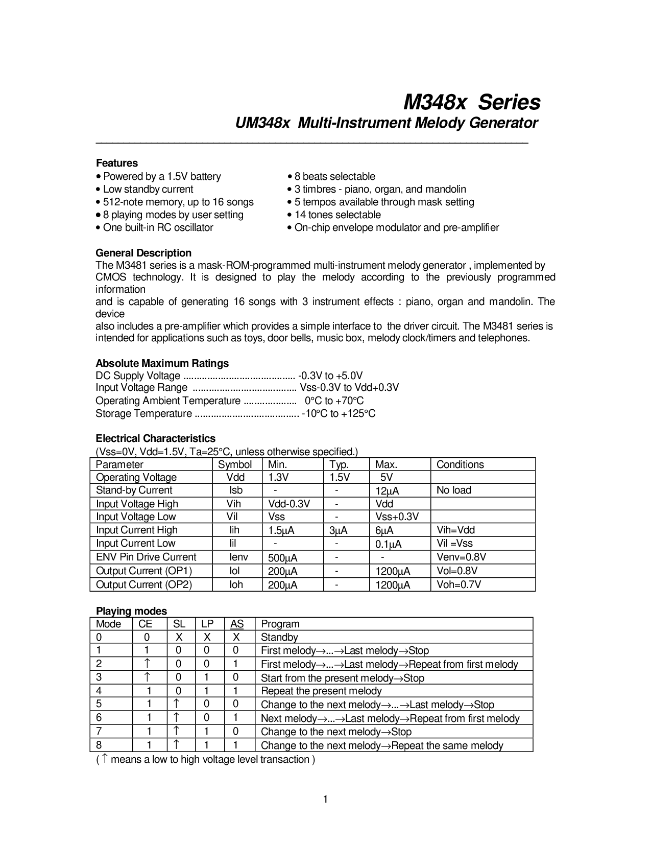 这 m3481 系列 是 一个 面具-rom-编程 多-仪器仪表 melody 发电机 , 已实施 由