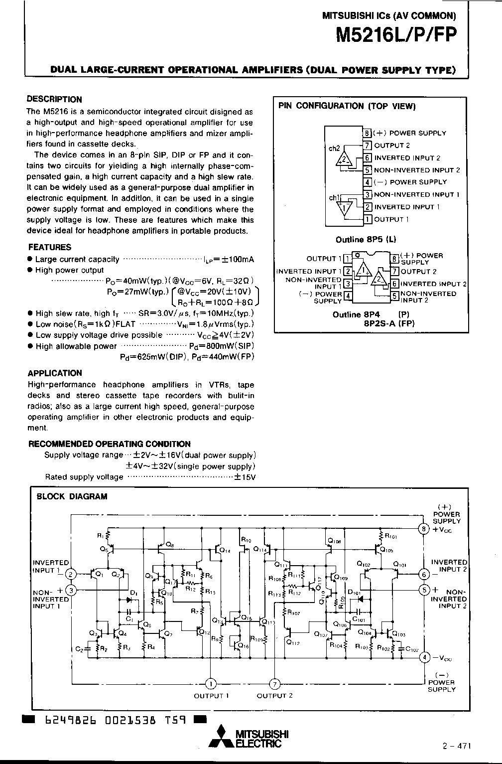 Dual Large-Current Operational Amplifiers(Dual Power Supply Type)