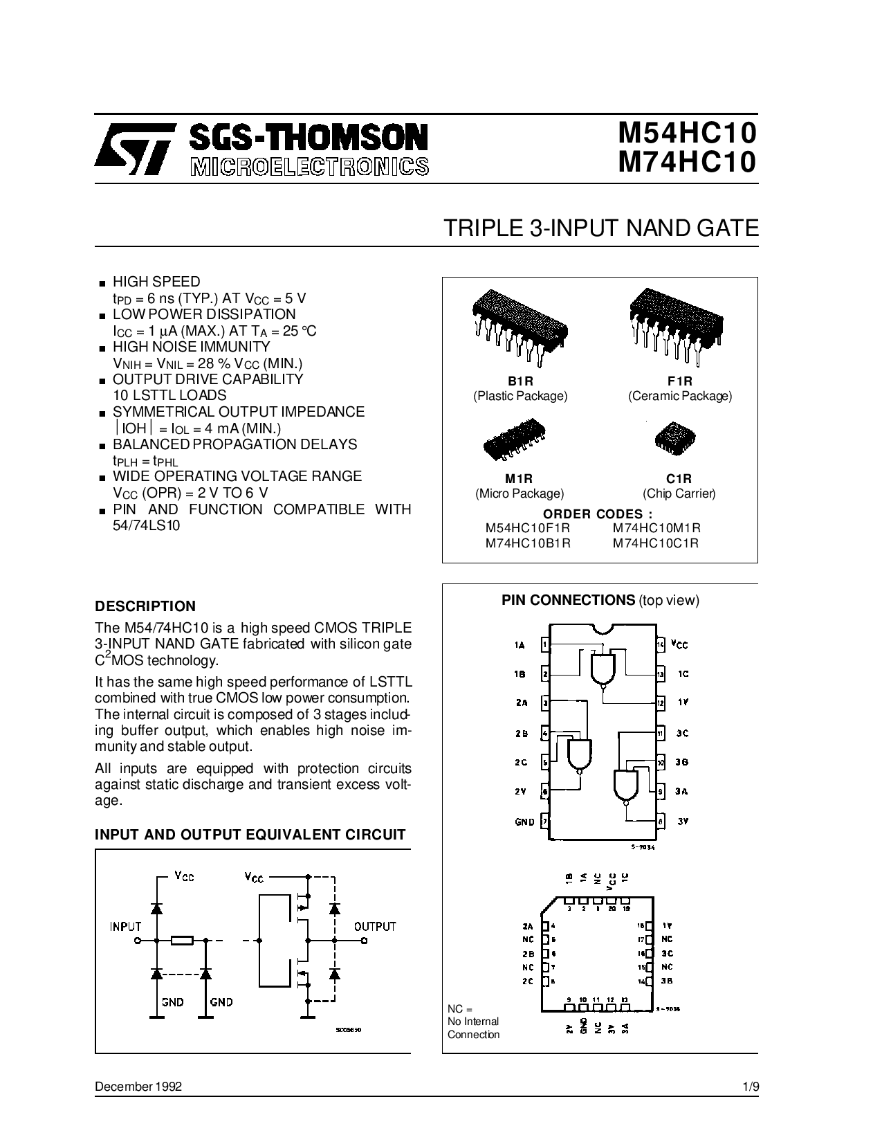 浏览型号M74HC10B1R的Datasheet PDF文件第9页