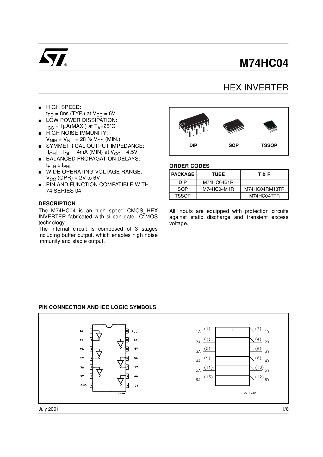 浏览型号M74HC04M1R的Datasheet PDF文件第2页