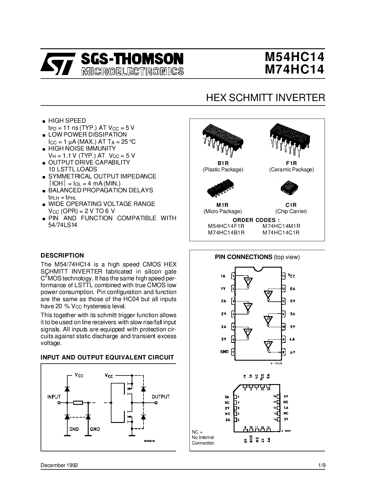这 m54/74hc14 是 一个 高 速度 CMOS 十六进制