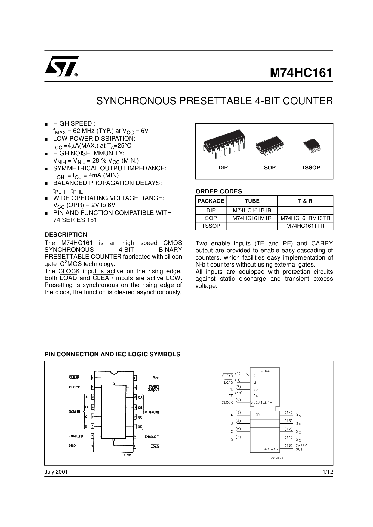 浏览型号M74HC161的Datasheet PDF文件第4页
