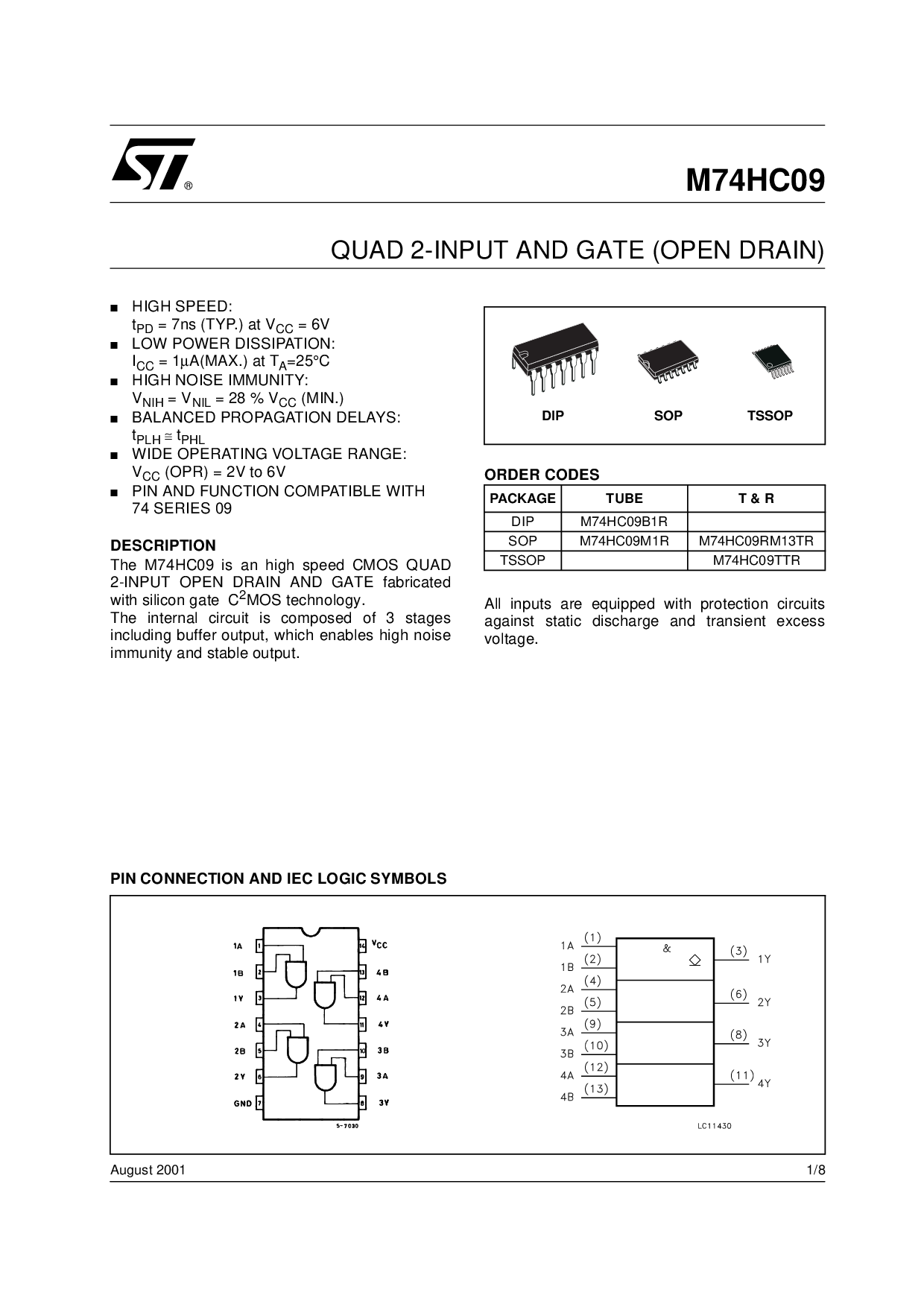 浏览型号M74HC09的Datasheet PDF文件第2页