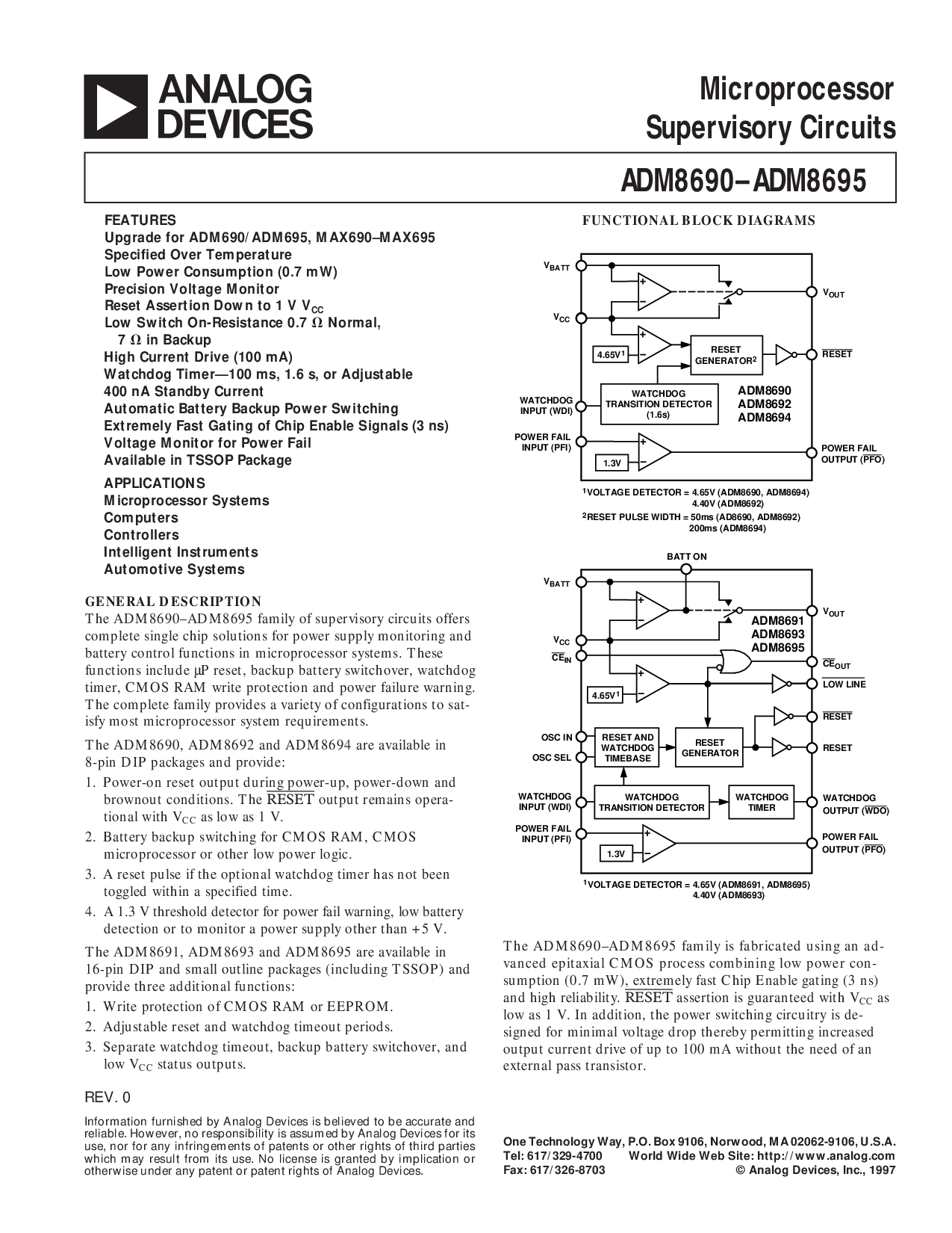 这 adm8690–adm8695 家庭 是 预制 使用 一个 广告-