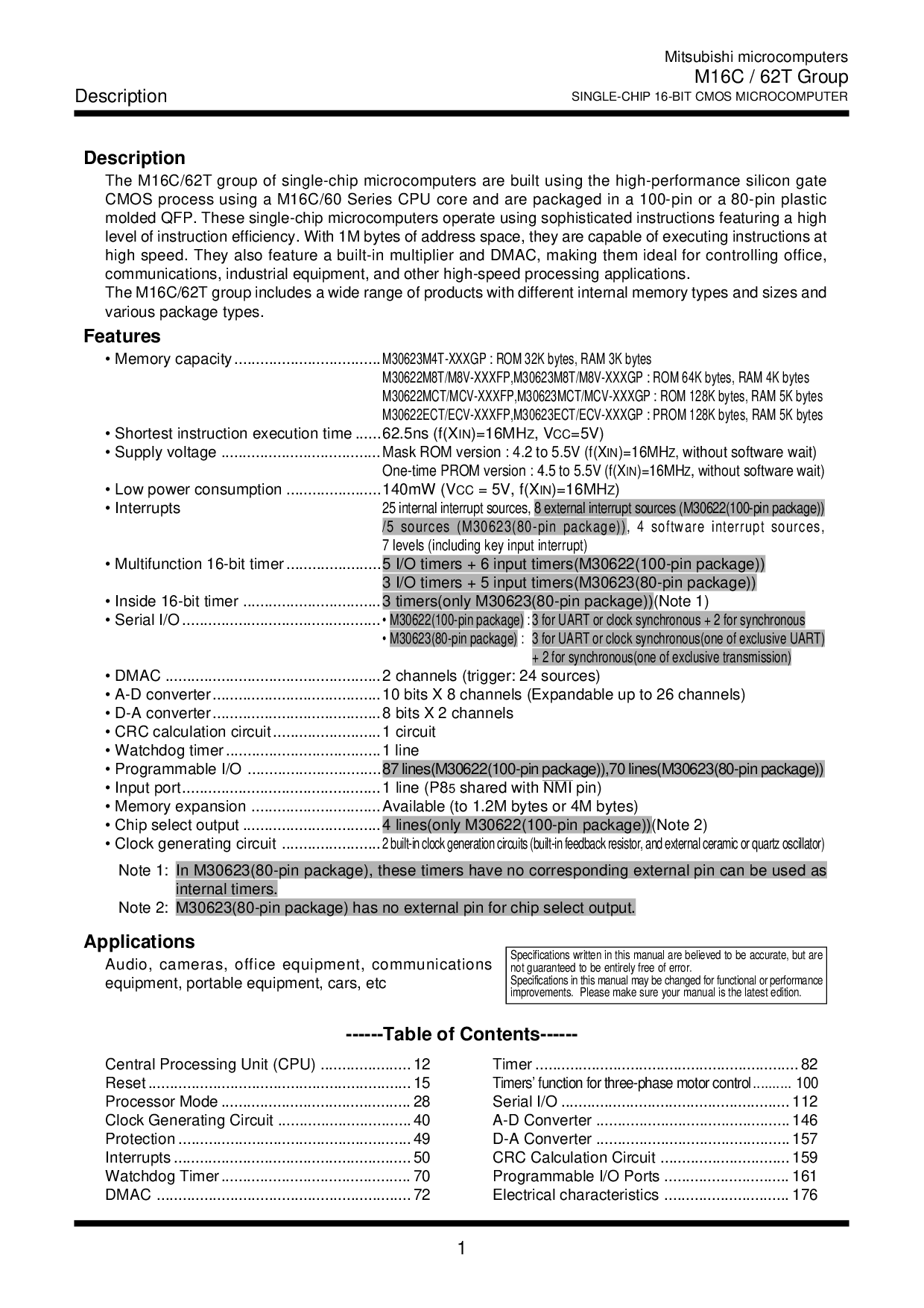 • 内部 16-有点 计时器 ................................3 计时器(仅 m30623(80-管脚 包装))(备注 1)
