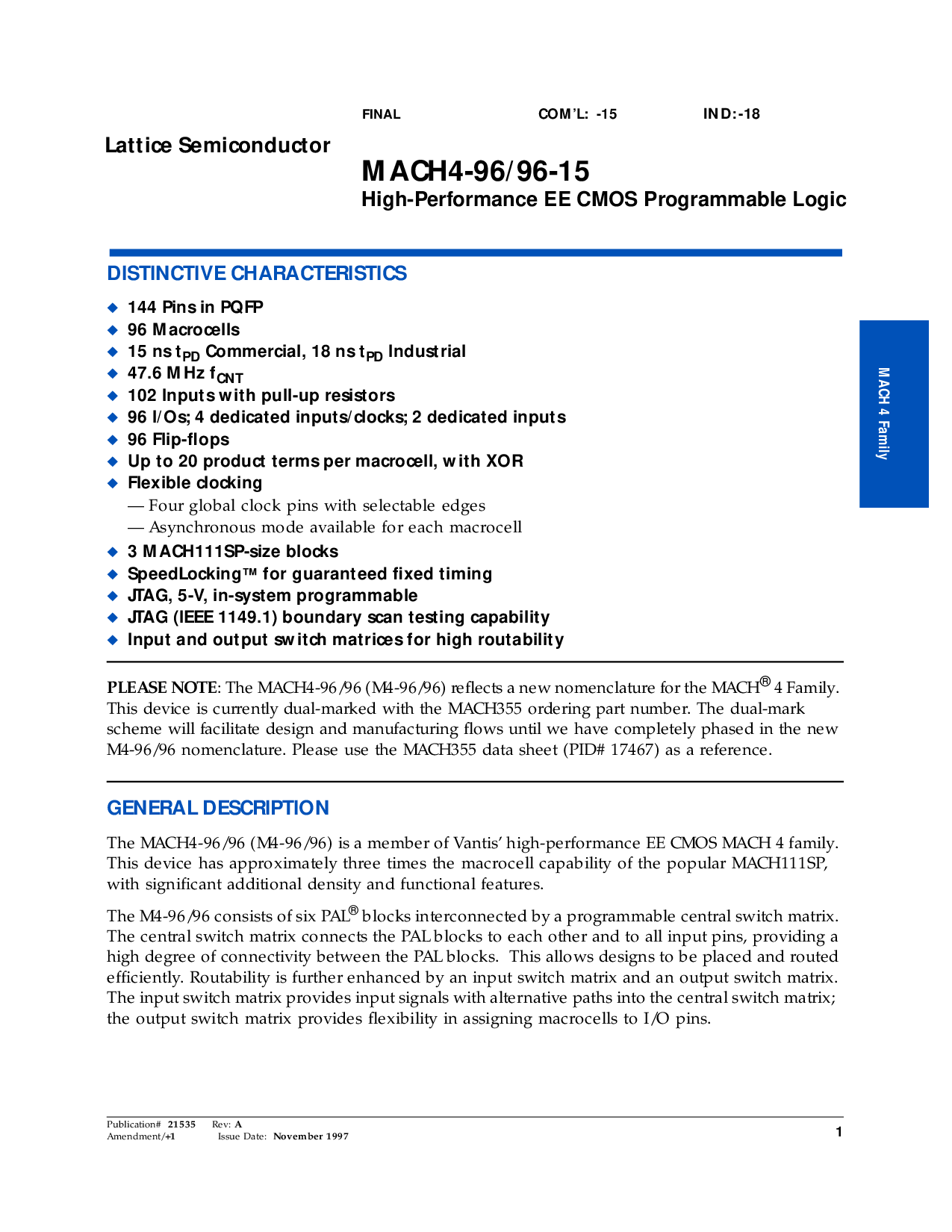 这 mach4-96/96 (m4-96/96) 是 一个 会员 的vantis’ 高-pe右fo右mance ee cmos 马赫数 4 家庭.