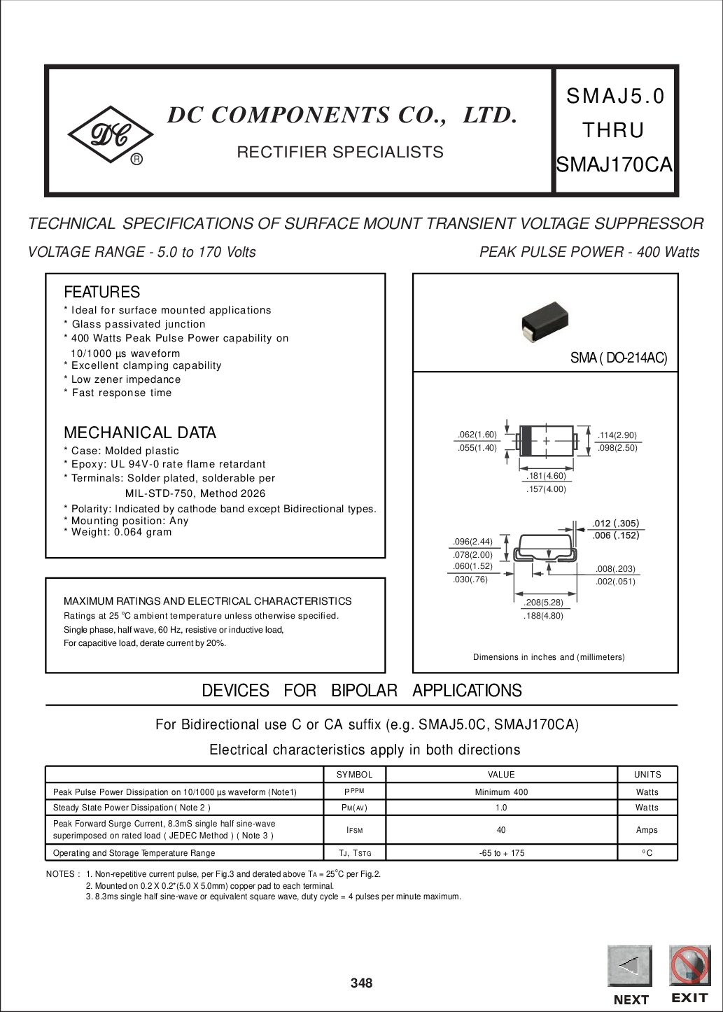 浏览型号SMAJ10的Datasheet PDF文件第2页