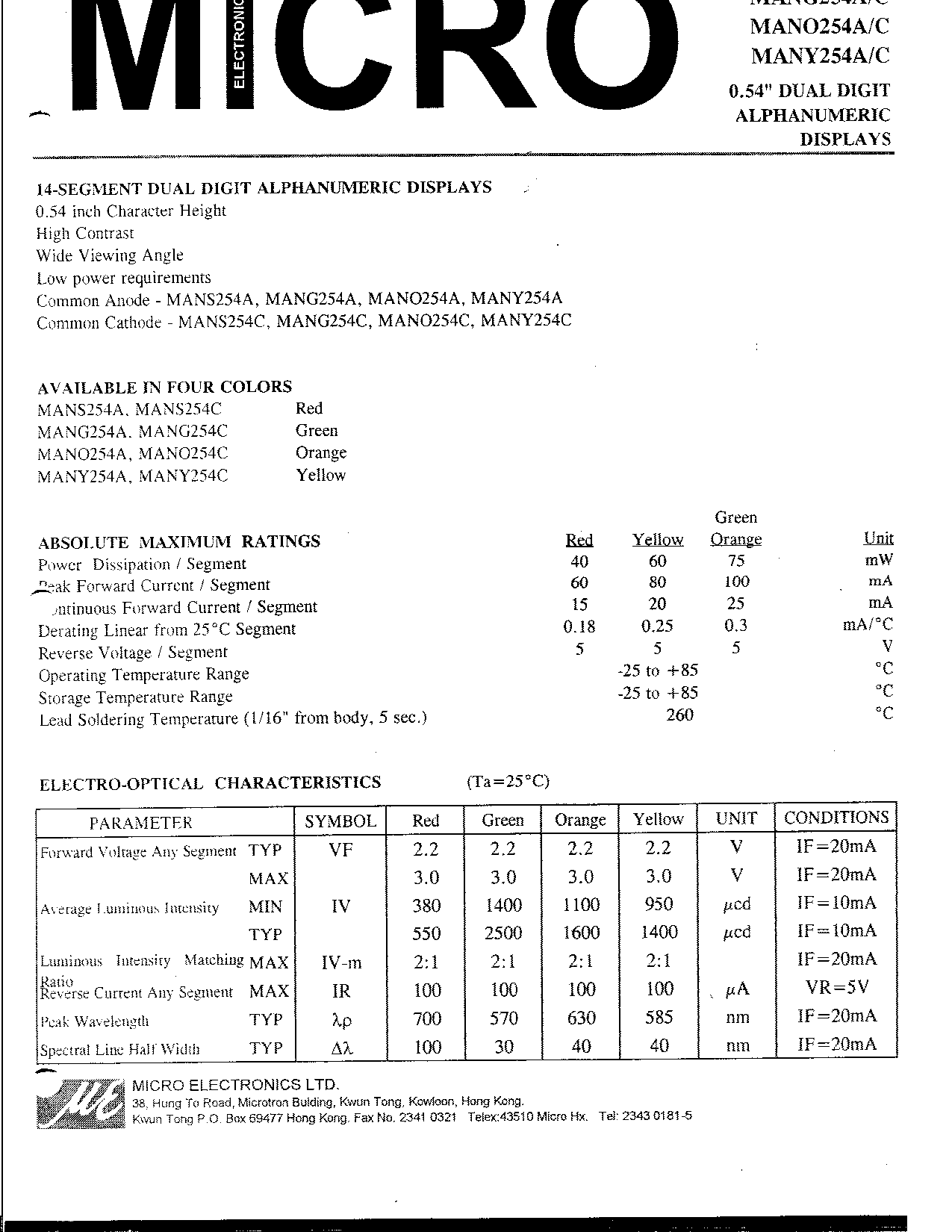 0.54 DUAL DIGIT ALPHANUMERIC DISPLAYS
