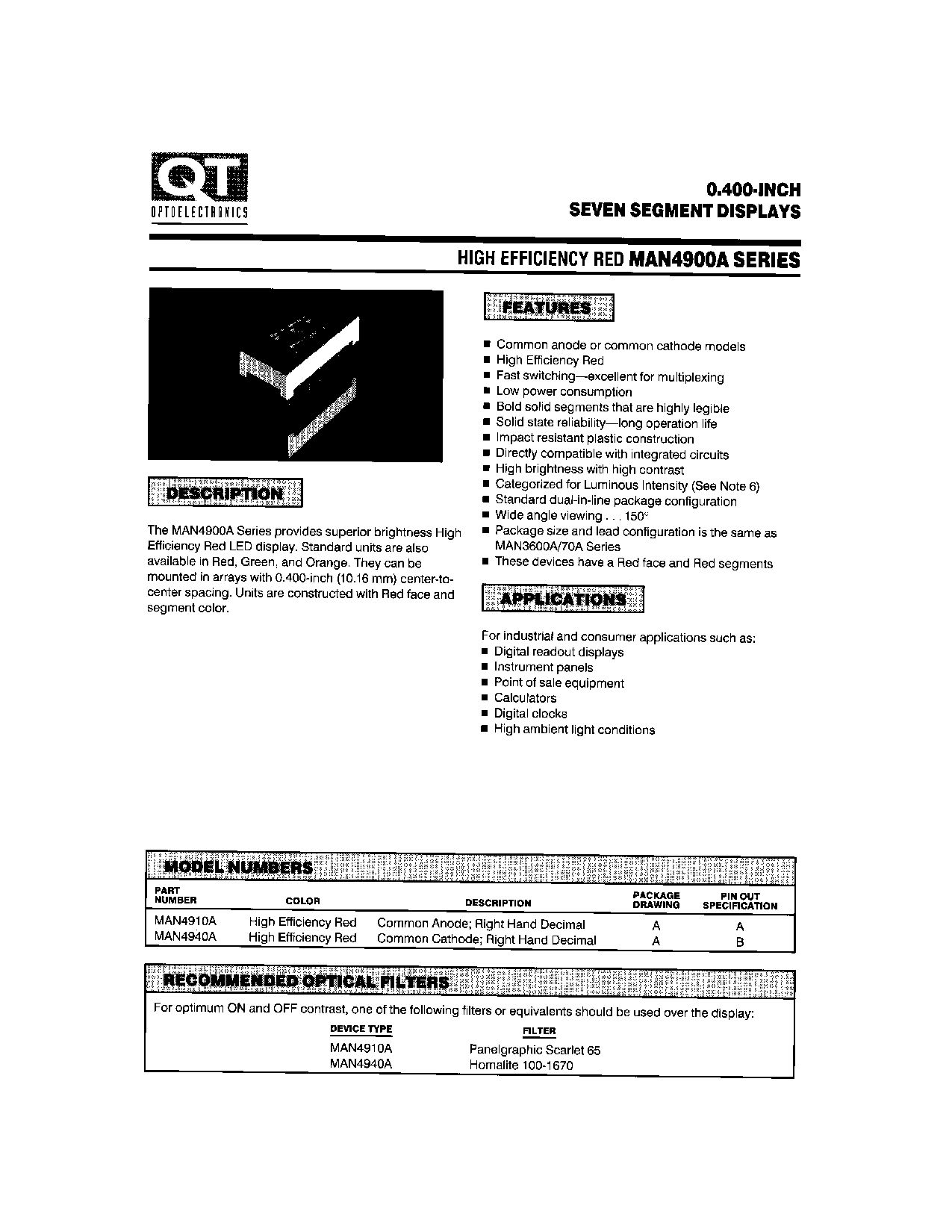 0.400-INCH SEVEN SEGMENT DISPLAYS