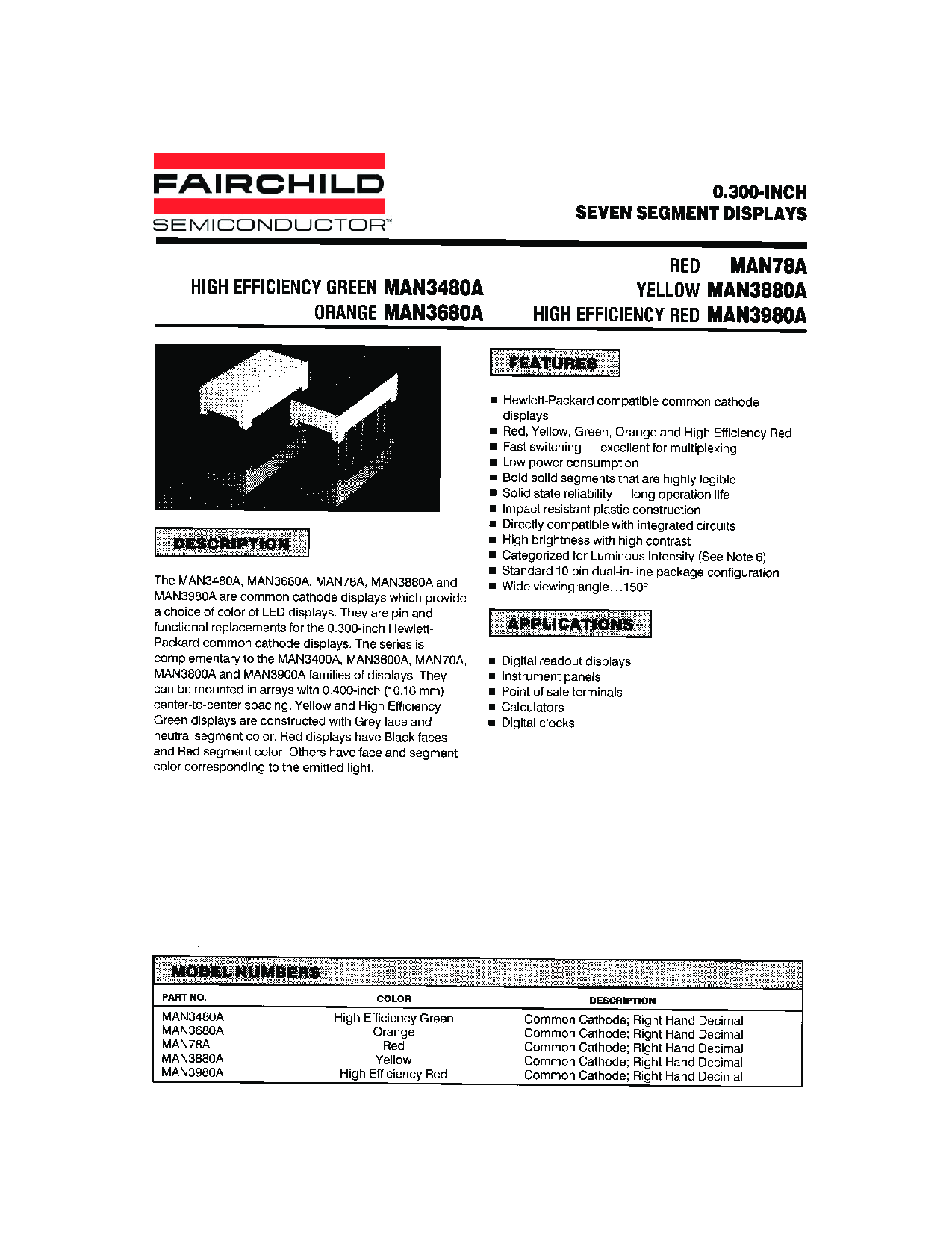 0.300-INCH SEVEN SEGMENT DISPLAYS