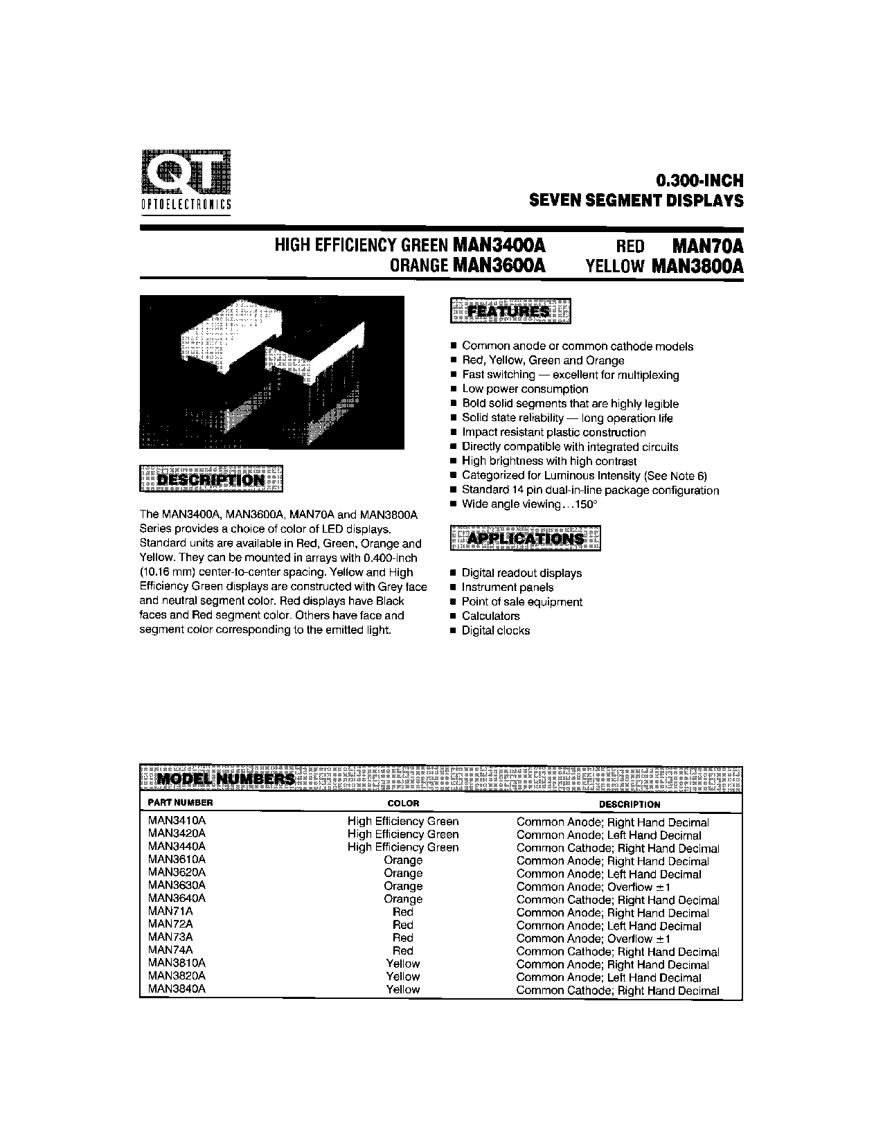 0.300-INCH SEVEN SEGMENT DISPLAYS