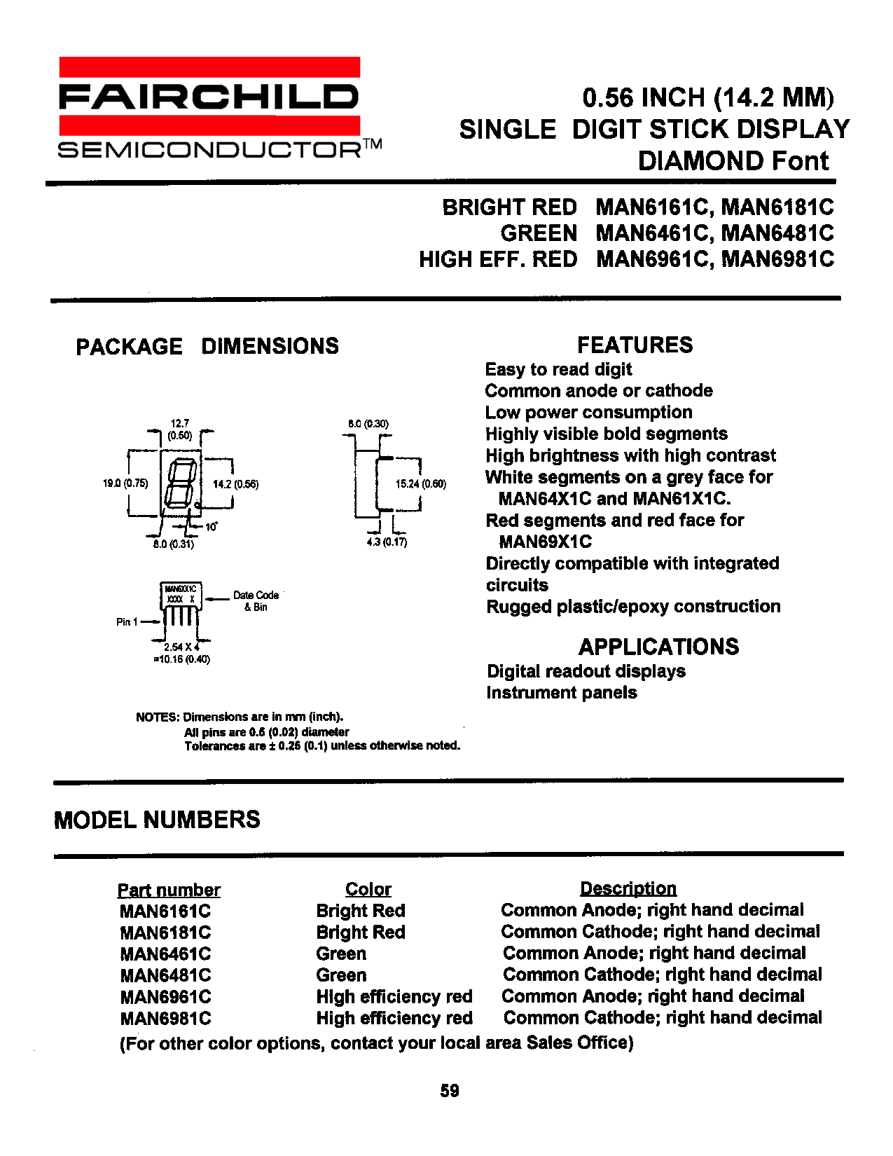 0.56 INCH (14.2 MM) SINGLE DIGIT STICK DISPLAY DIAMOND Font