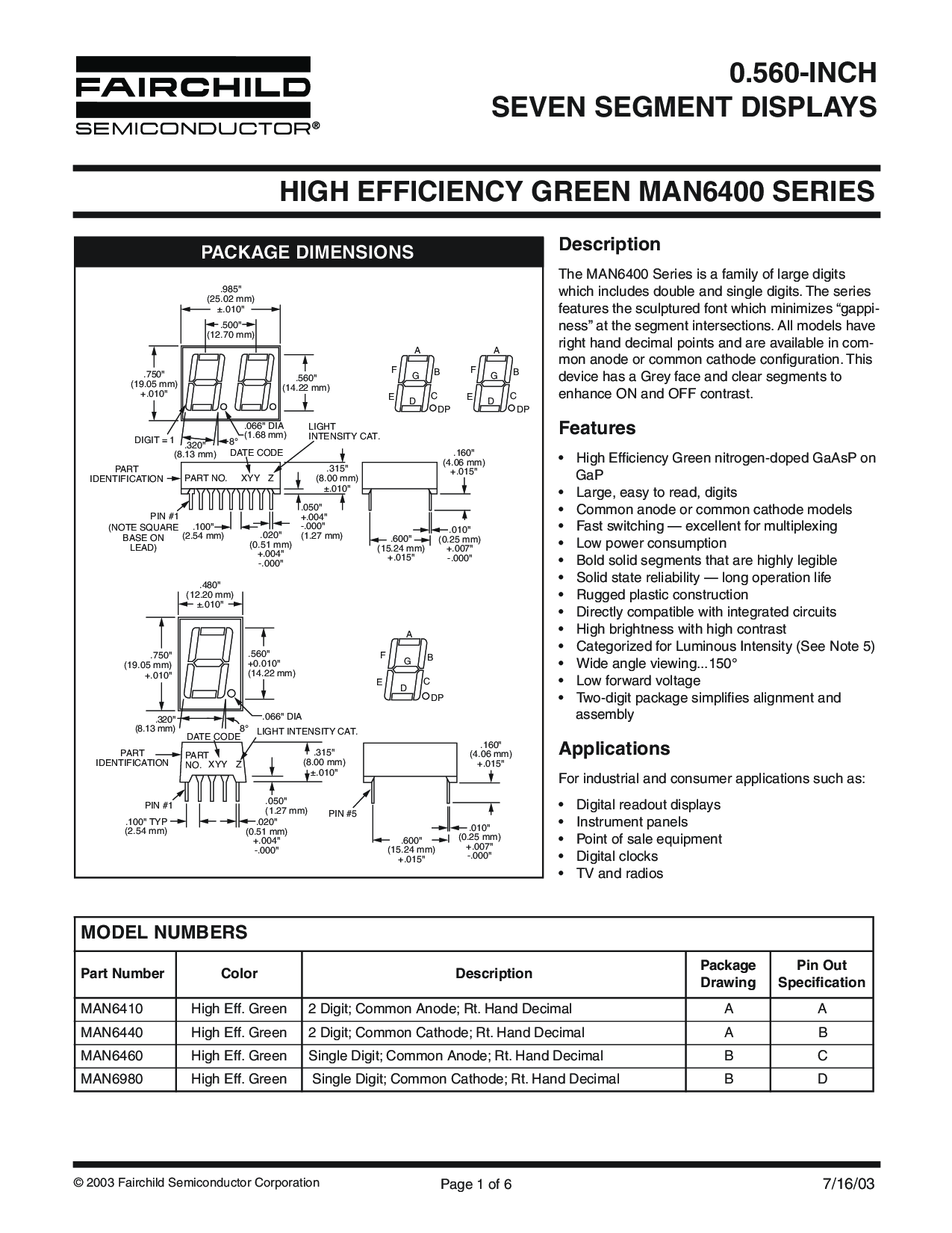 MAN6410 高 eff. 绿色 2 数字; 普通 阳极; rt. 手 十进制 一个 一个