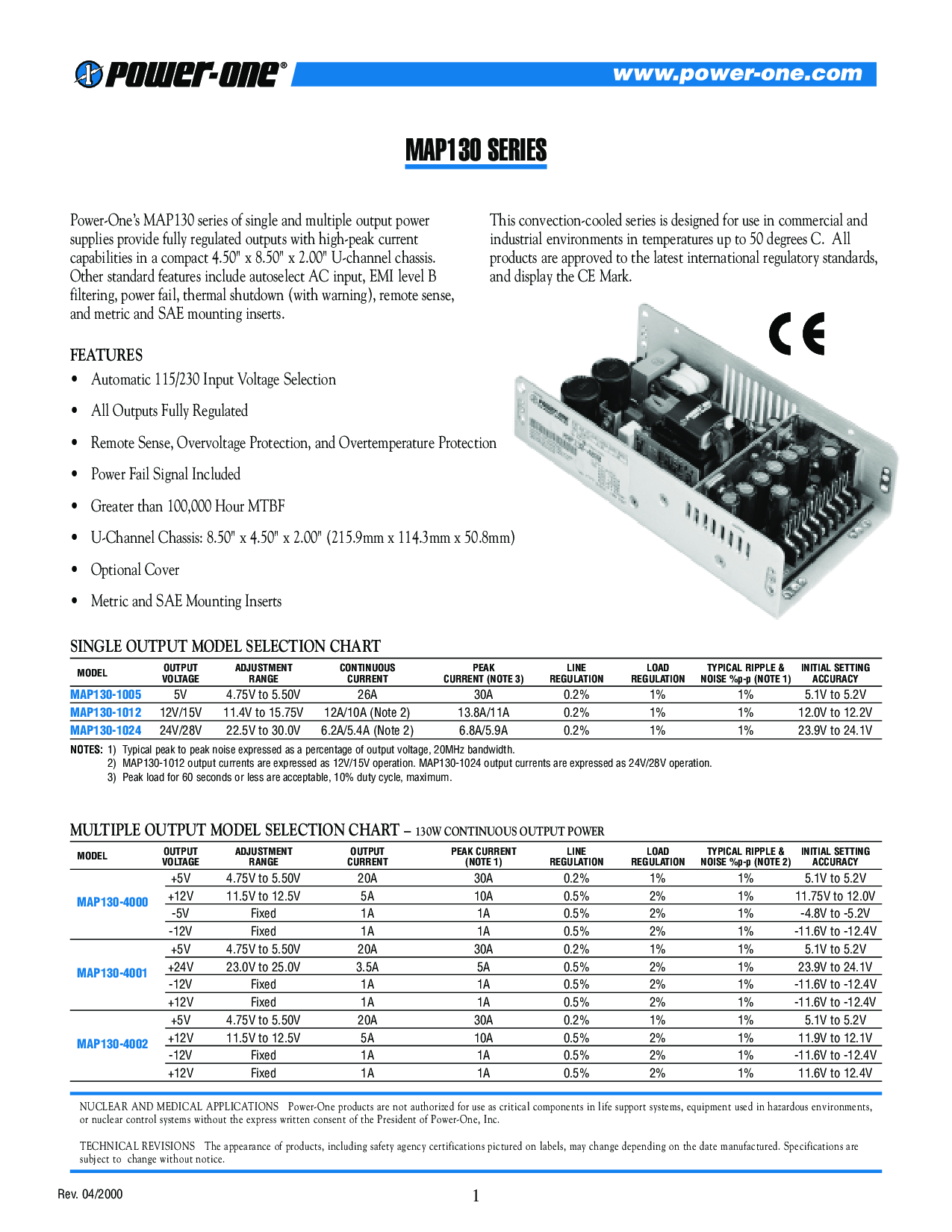 电源-一个’s map130 系列 的 单独 和 多个 输出 电源