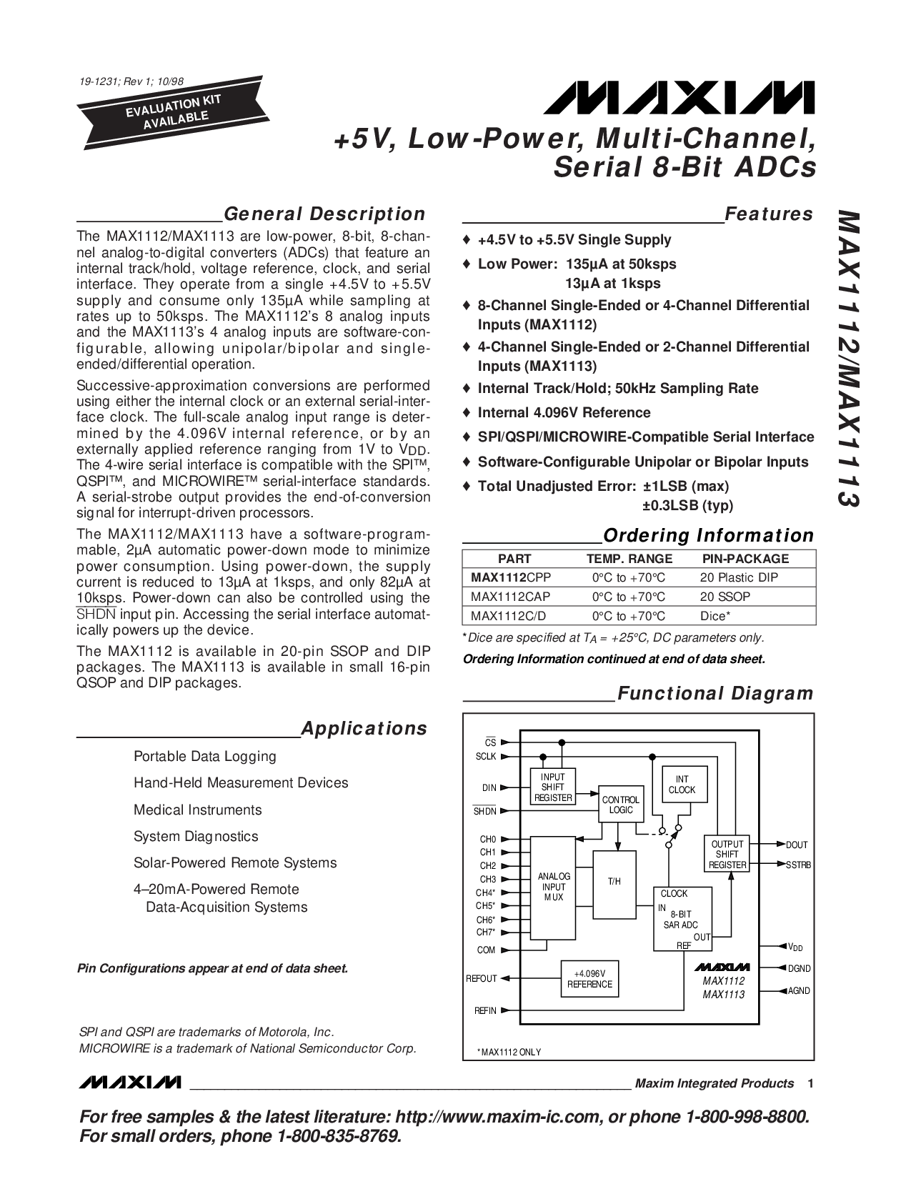 这 max1112/max1113 是 低-电源, 8-有点, 8-陈-