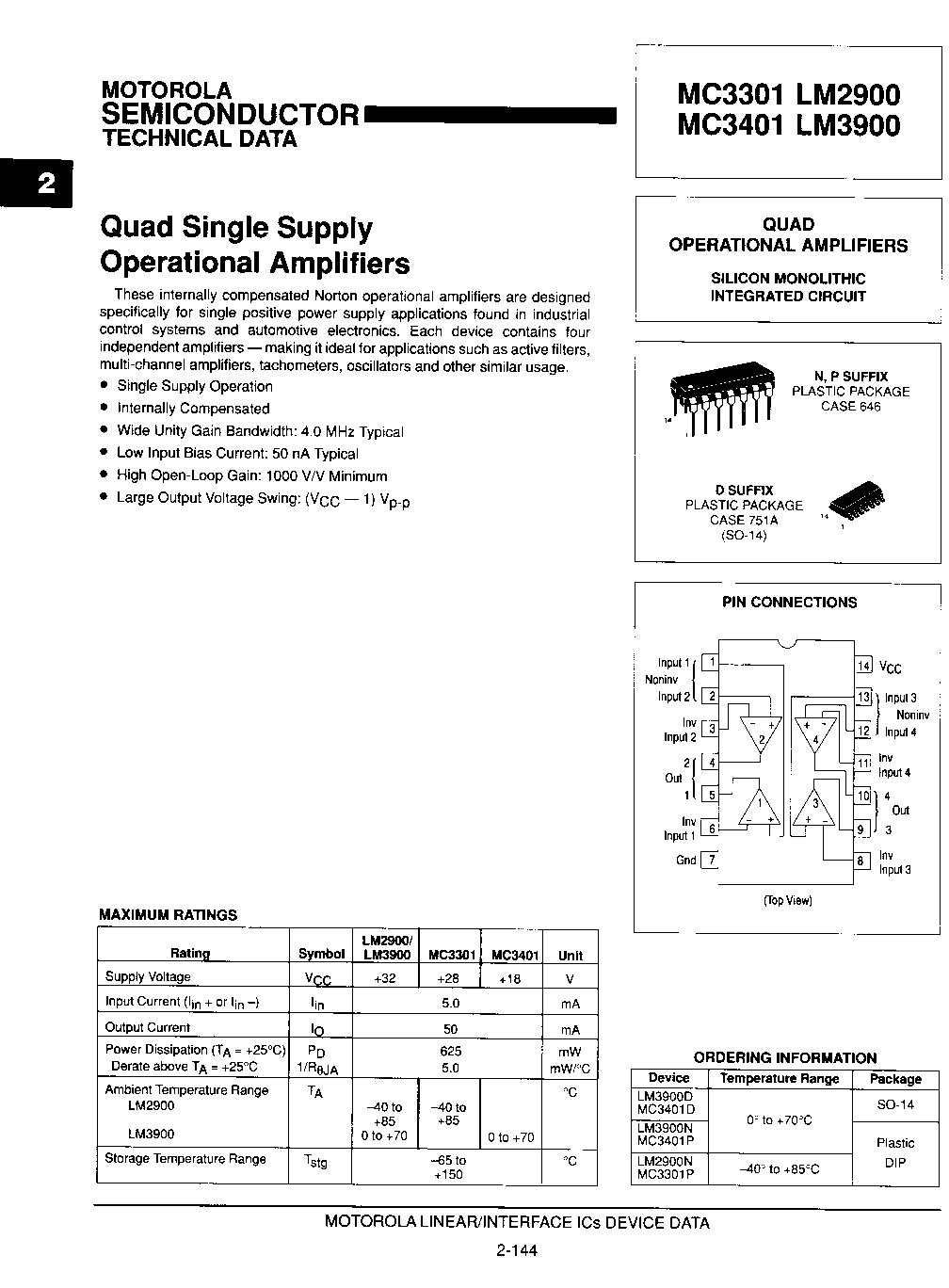 QUAD SINGLE SUPPLY OPERATIONAL AMPLIFIERS
