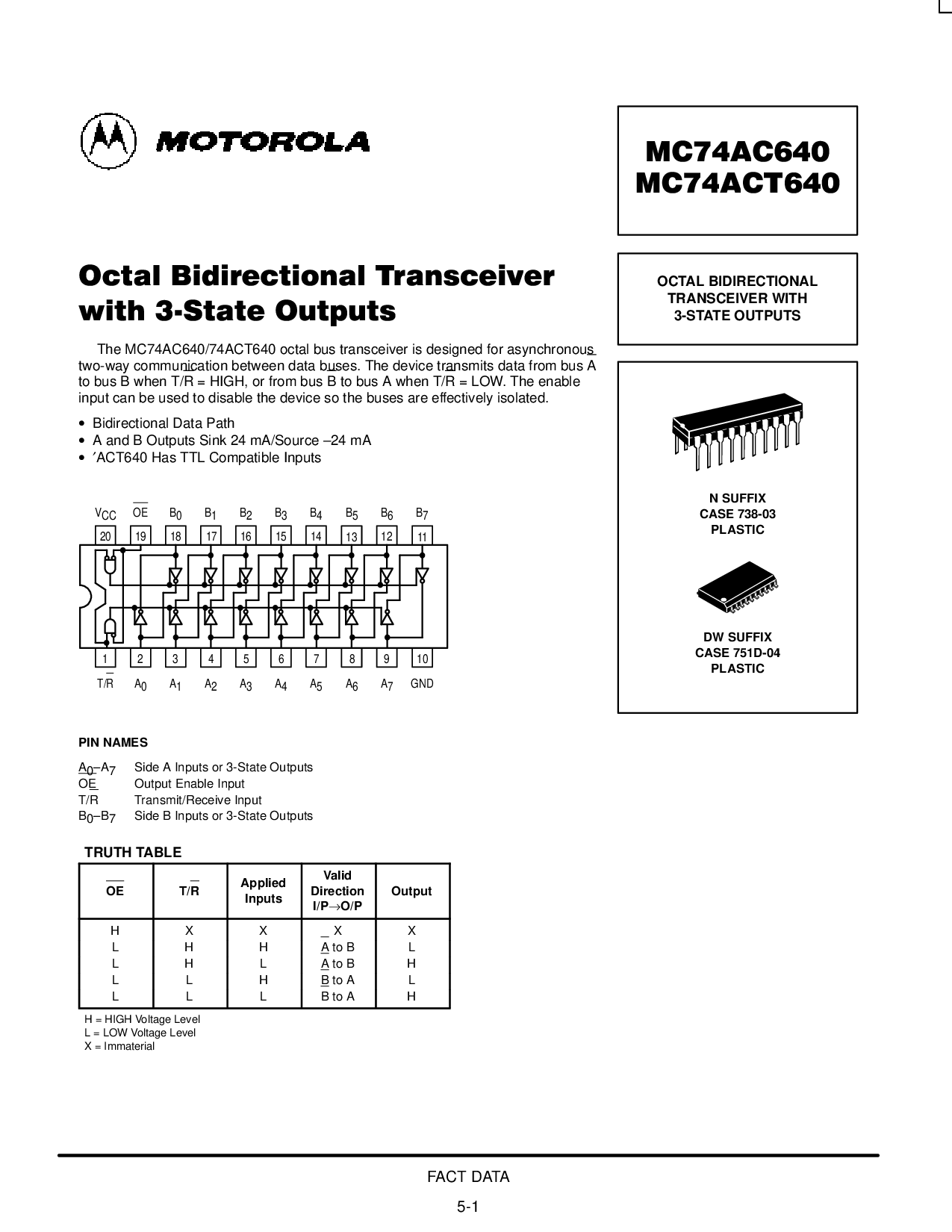 这 mc74ac640/74act640 八进制 总线 收发器 是 设计 用于 异步