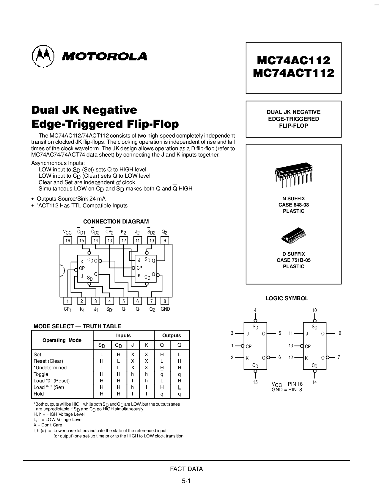 这 mc74ac112/74act112 由 的 两个 高速 完全独立
