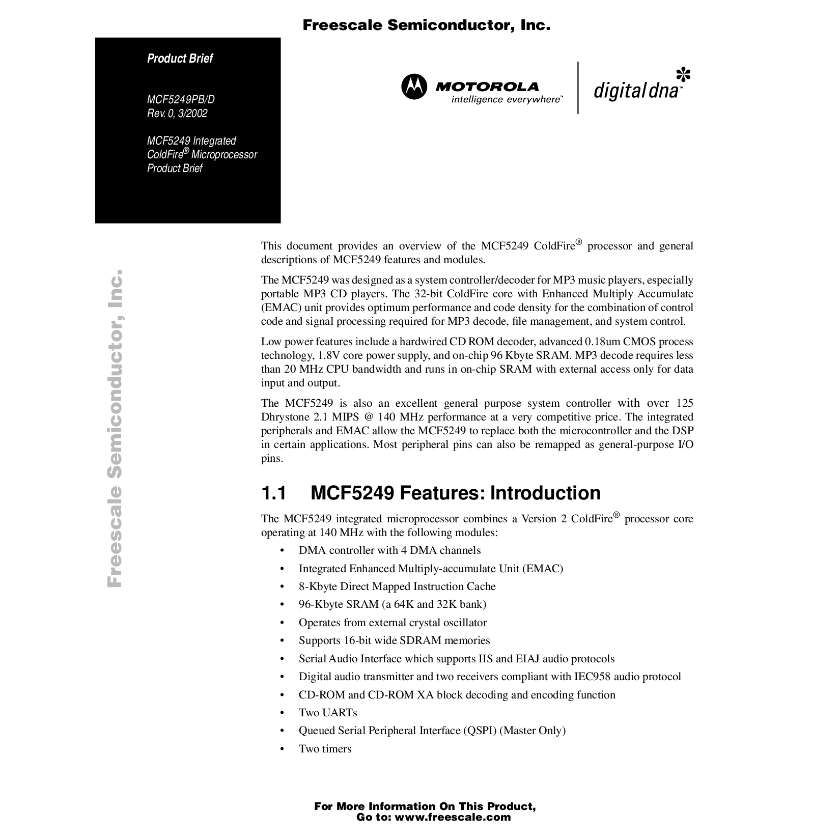 这 mcf5249 综合 微处理器 联合收割机 一个 版本 2 coldfire