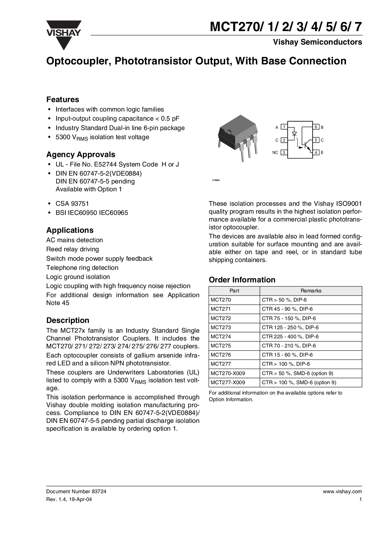 mct270-x009 ctr > 50 %, smd-6 (选项 9)