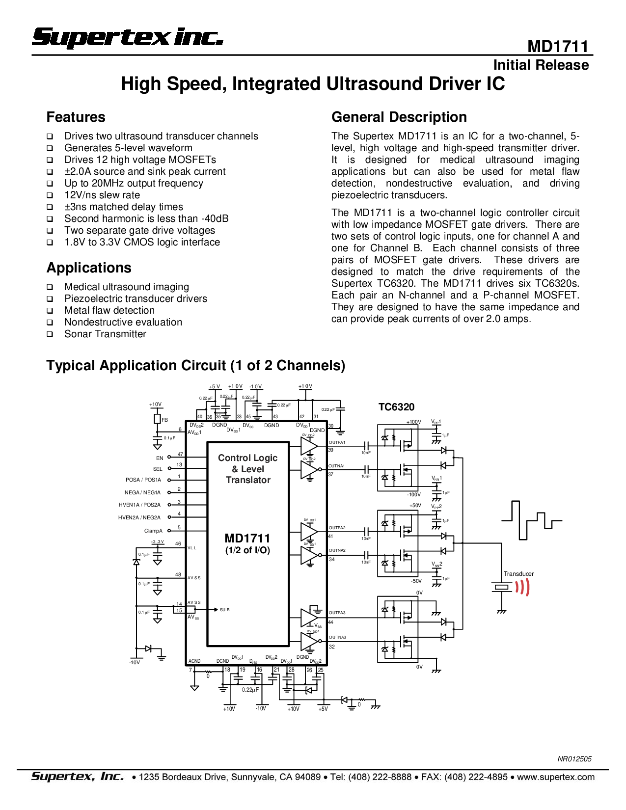 这 supertex md1711 是 一个 集成电路 用于 一个 两个-频道, 5-