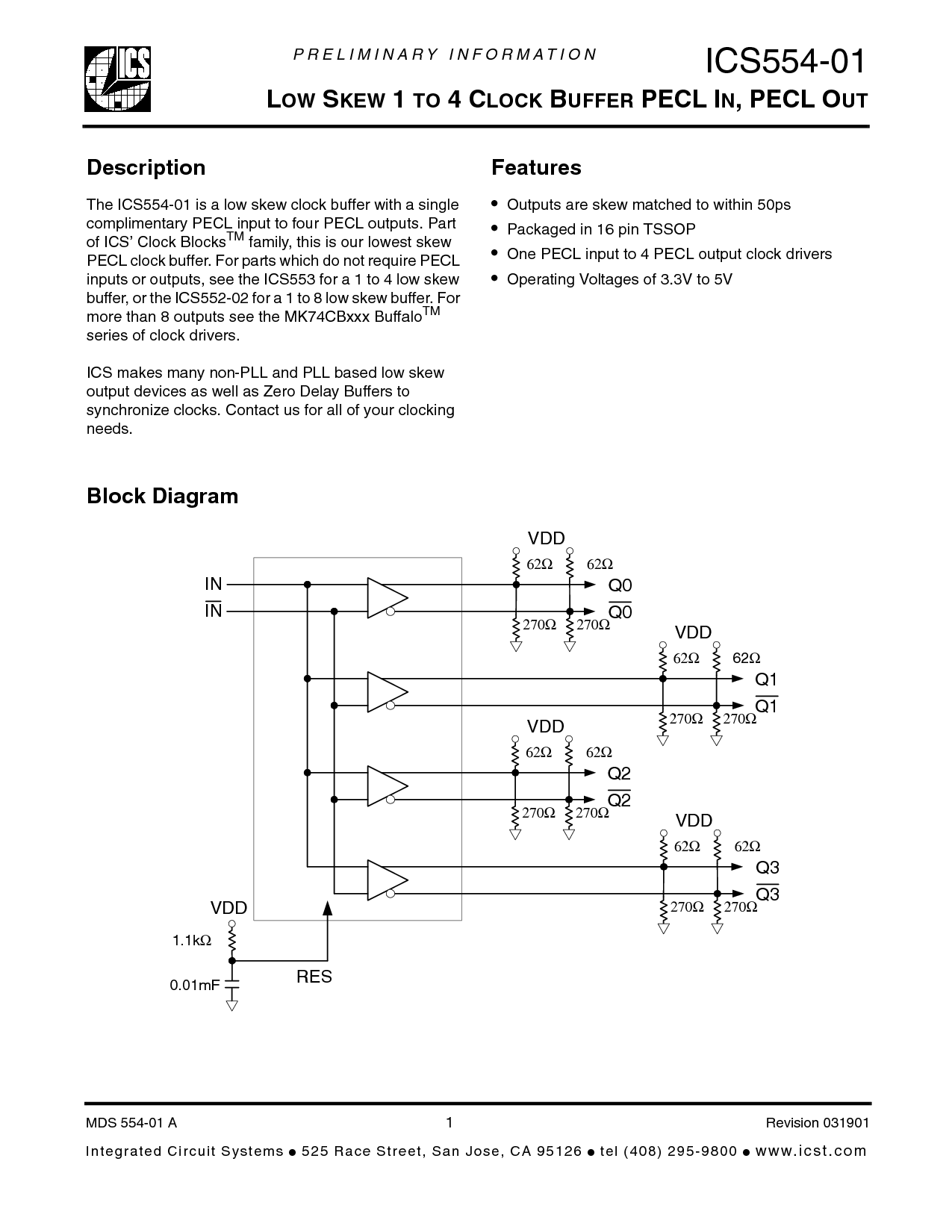 这 ics554-01 是 一个 低 偏斜 时钟 缓冲区 与 一个 单独