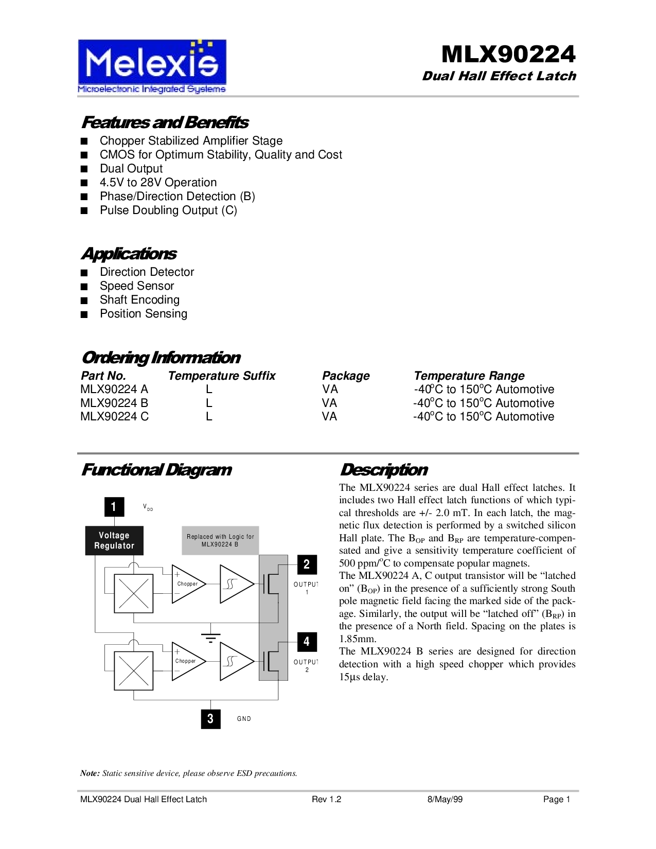 mlx90224 双 通道 效果 门闩 rev 1.2 8/将/99 第页 1