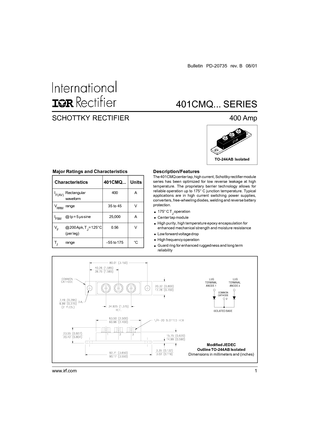 这 401cmq 中心 轻敲, 高 电流, 肖特基 整流器 模块