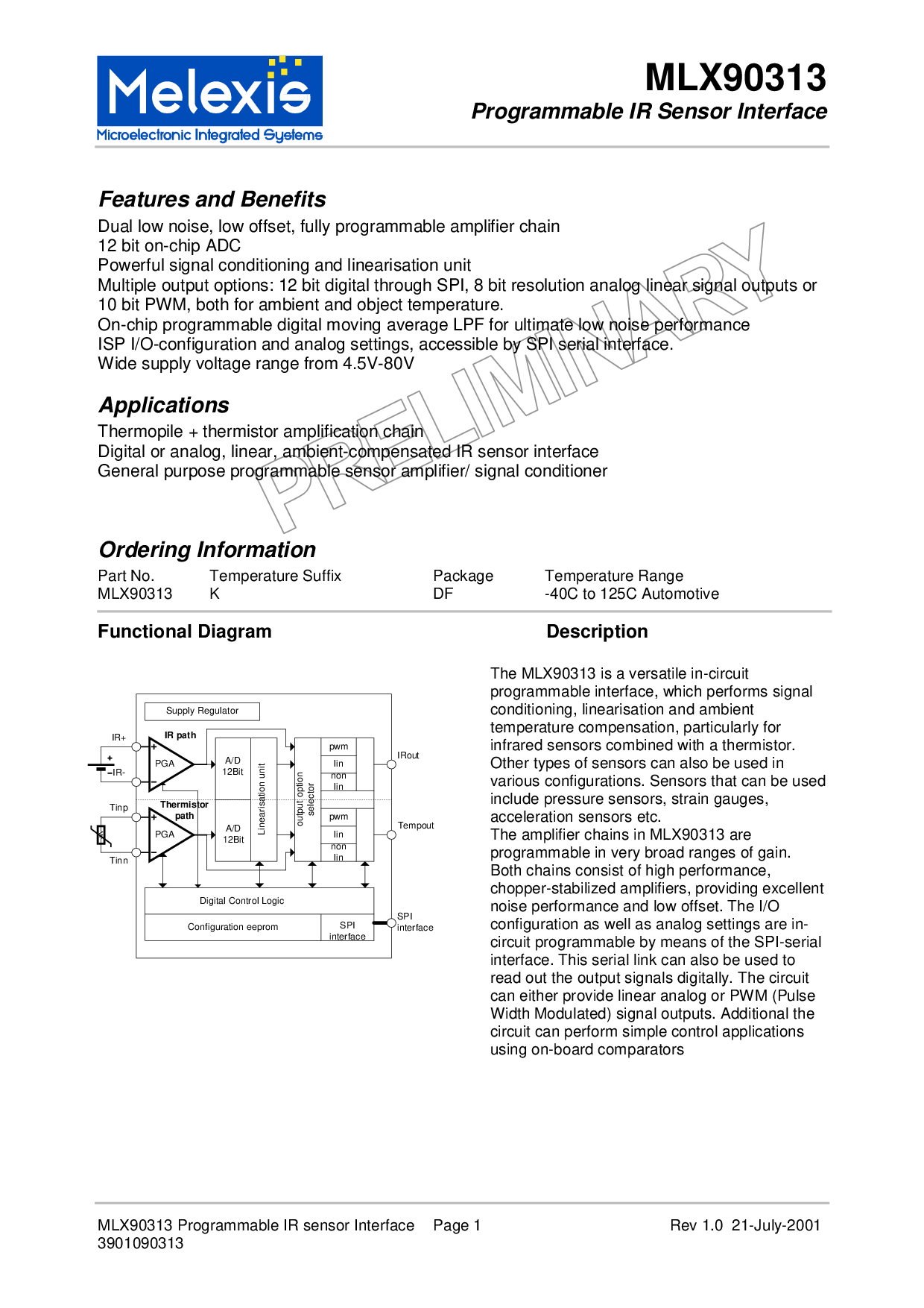 mlx90313 可编程 红外线 传感器 接口 第页 1 rev 1.0 21-july-2001