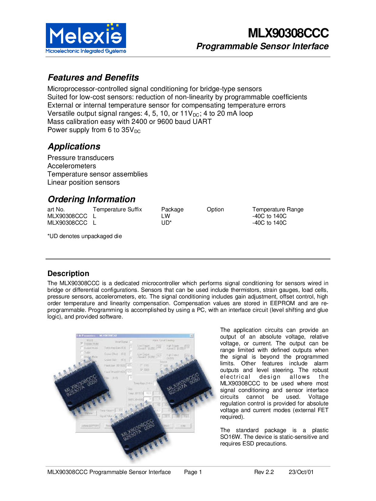 mlx90308ccc 可编程 传感器 接口 第页1 rev2.2 23/oct/01