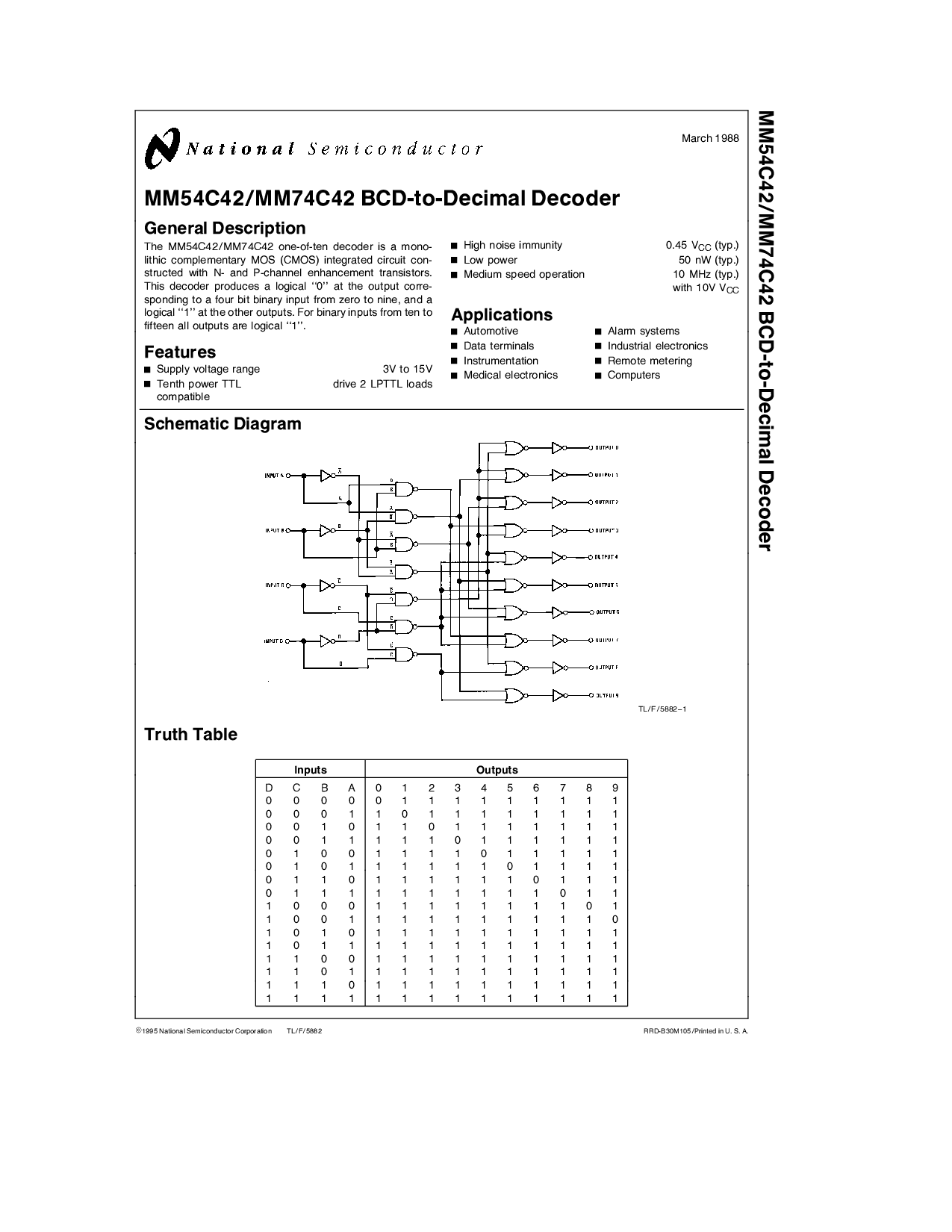 这 MM54C42MM74C42 一个-的-十 解码器 是 一个 单声道-
