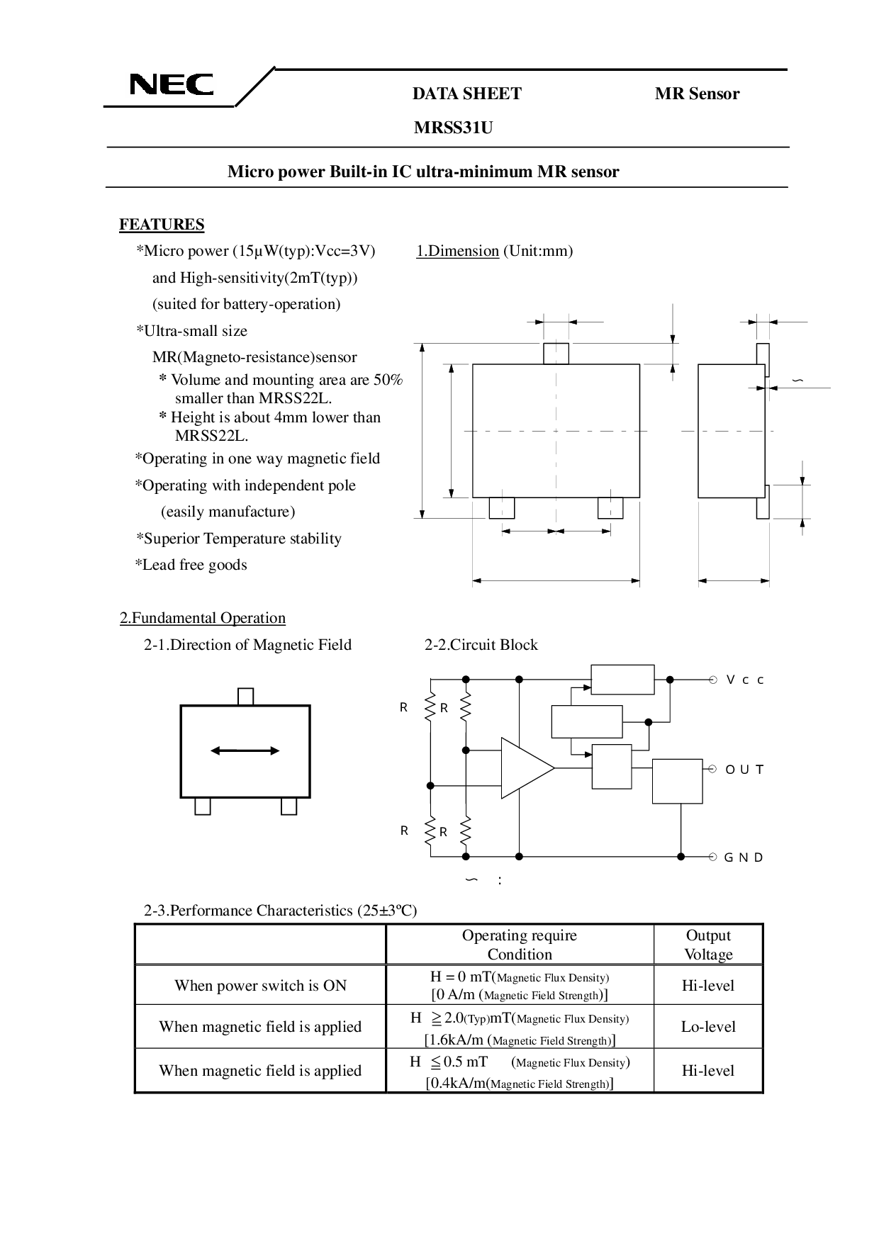 和 高-灵敏度(2mt(典型值))