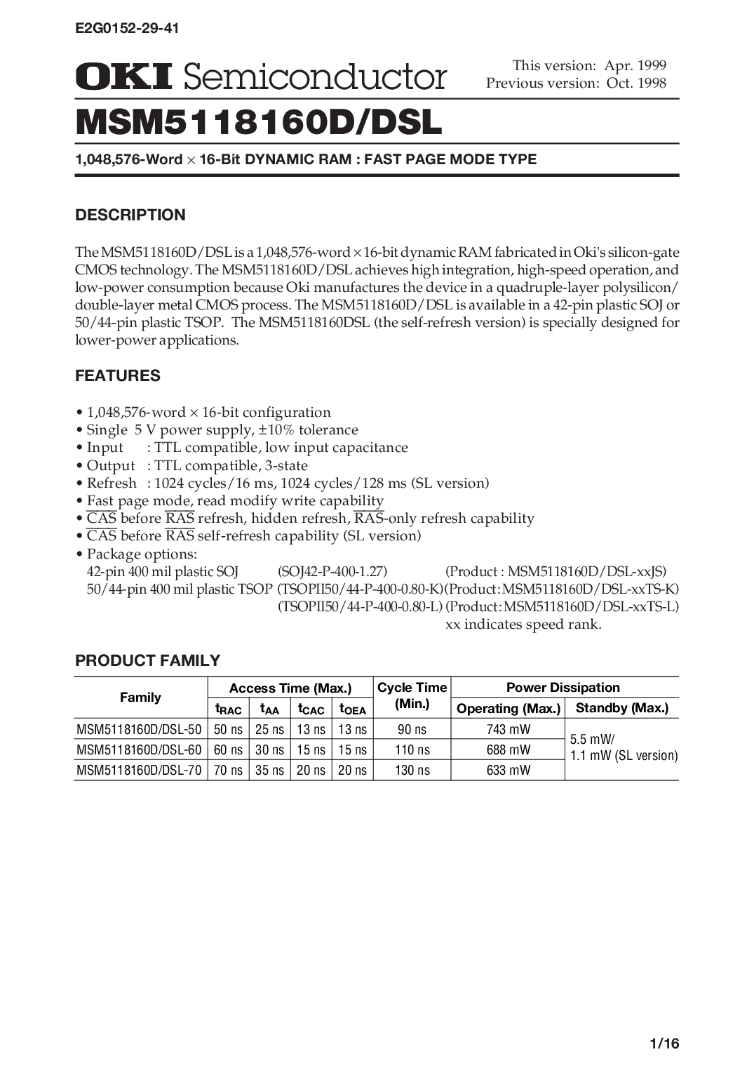 cmos 技术. 这 msm5118160d/dsl 达到 高 集成, 高速 操作, 和