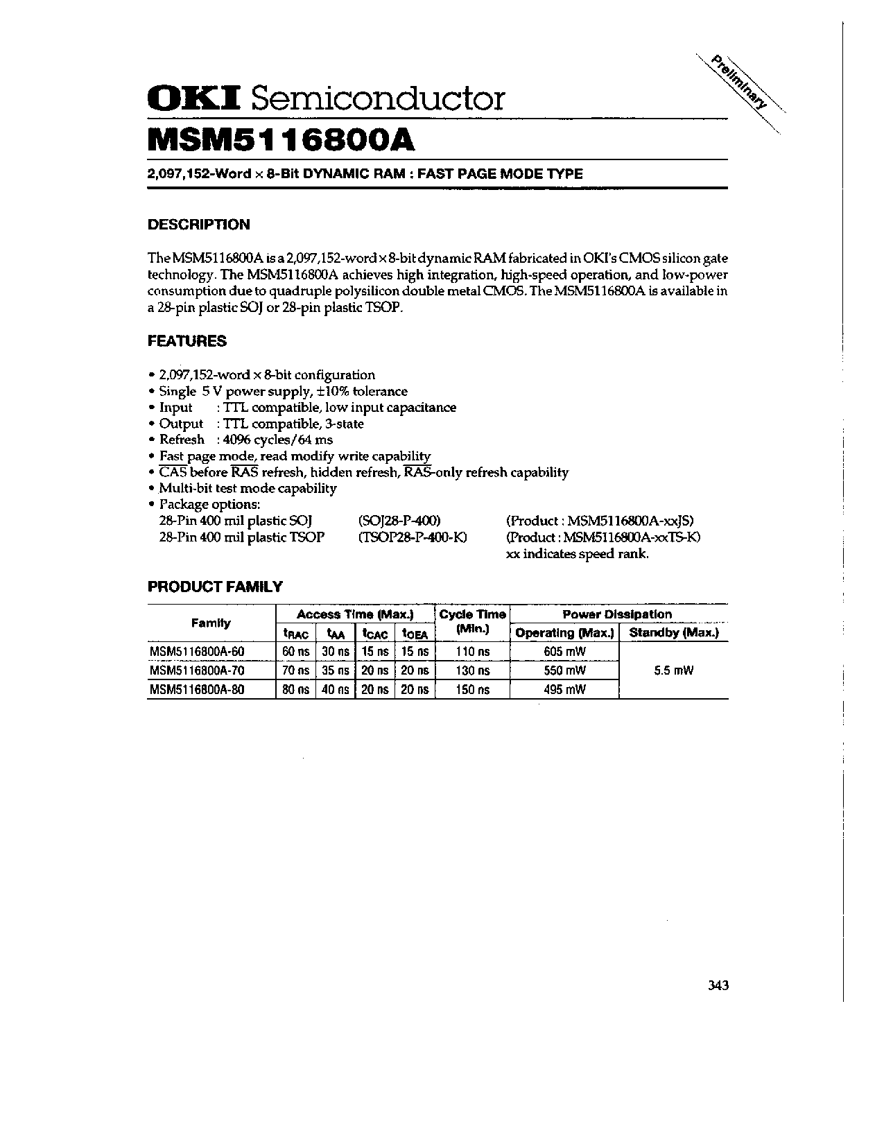 2,097,152-Word x 8-Bit DYNAMIC RAM : FAST PAGE MODE TYPE