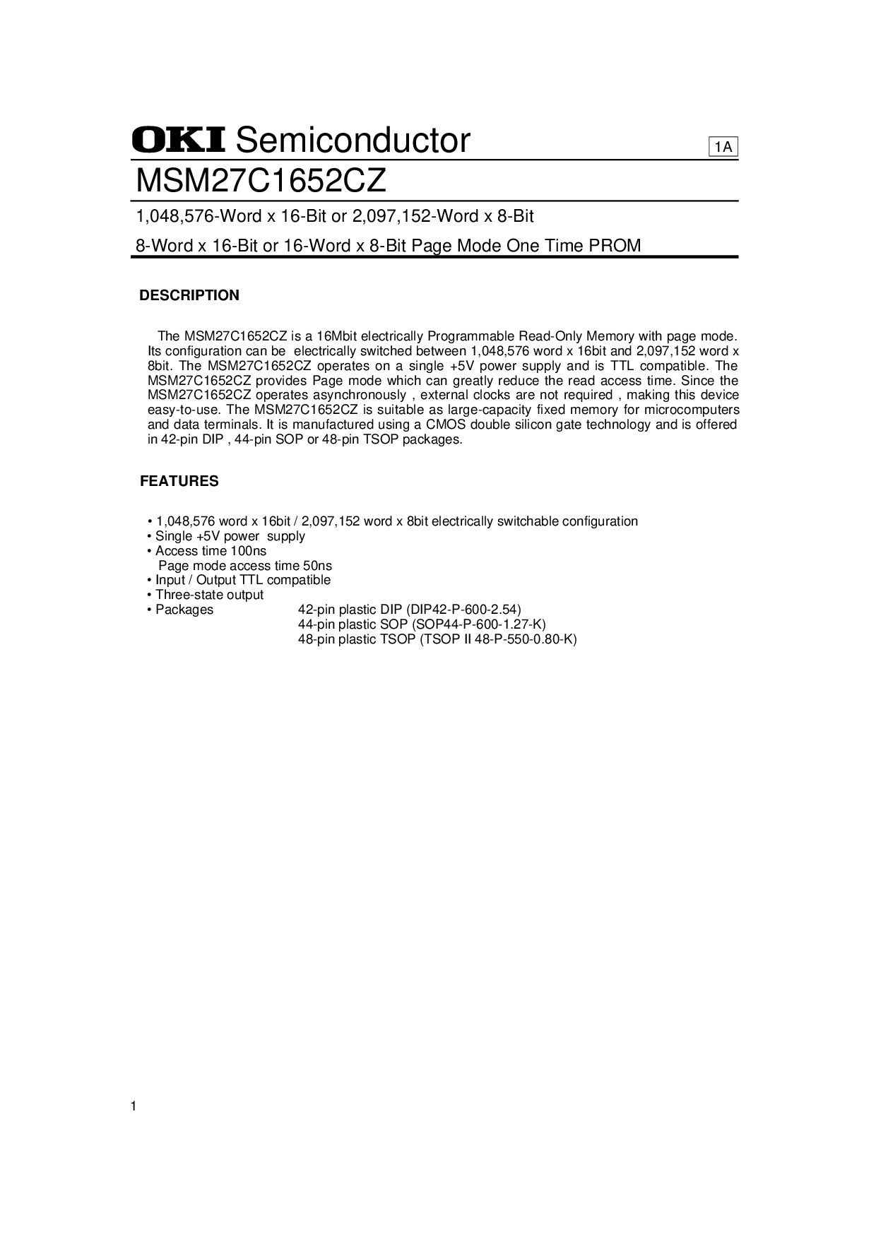 这 msm27c1652cz 是 一个 16mbit 电气 可编程 只读 记忆 与 第页 模式.