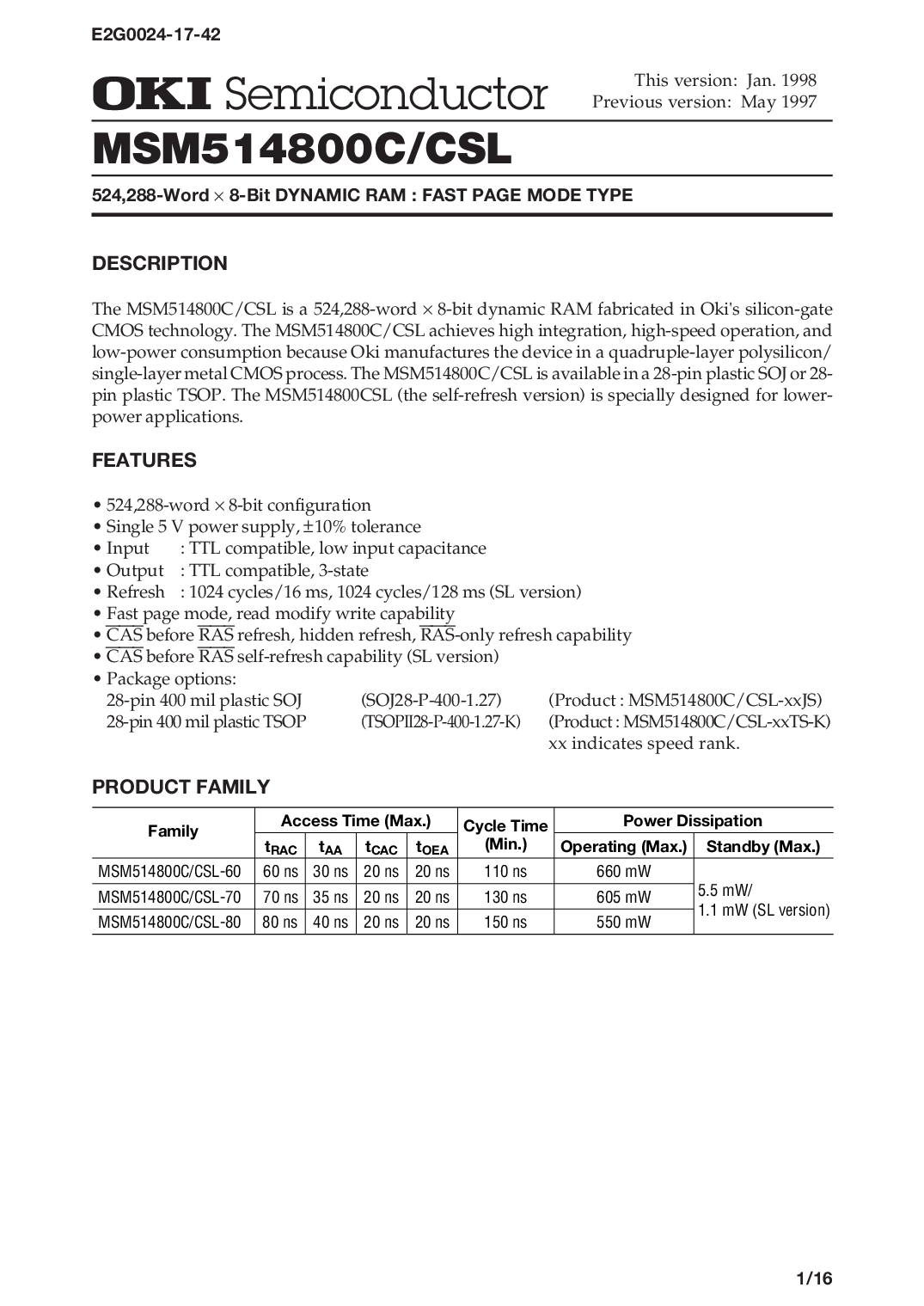 单层 金属 cmos 流程. 这 msm514800c/csl 是 可用 入点 一个 28-管脚 塑料 soj 或 28-