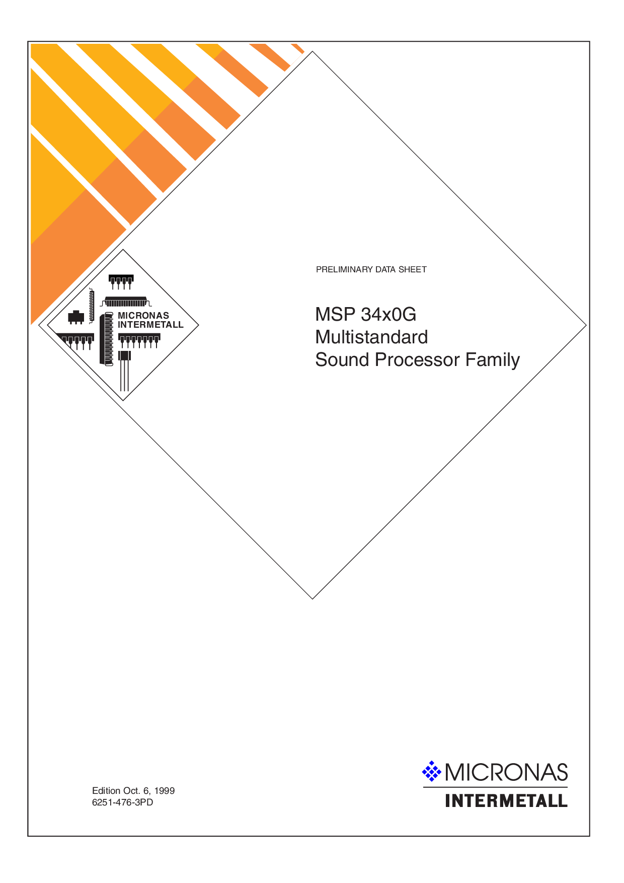 msp 34x0g Multistandard 声音 处理器 家庭 版本 oct. 6, 1999 6251-476-3pd 初步 数据 工作表 MICRONAS INTERMETALL | |
