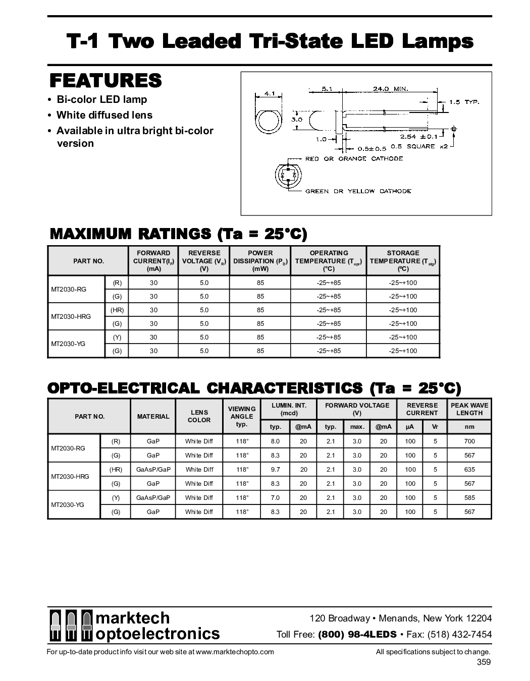 用于 最新 产品 信息 参观 我们的 web 现场 在 www.marktechopto.com全部 规格 主题 至 变更.