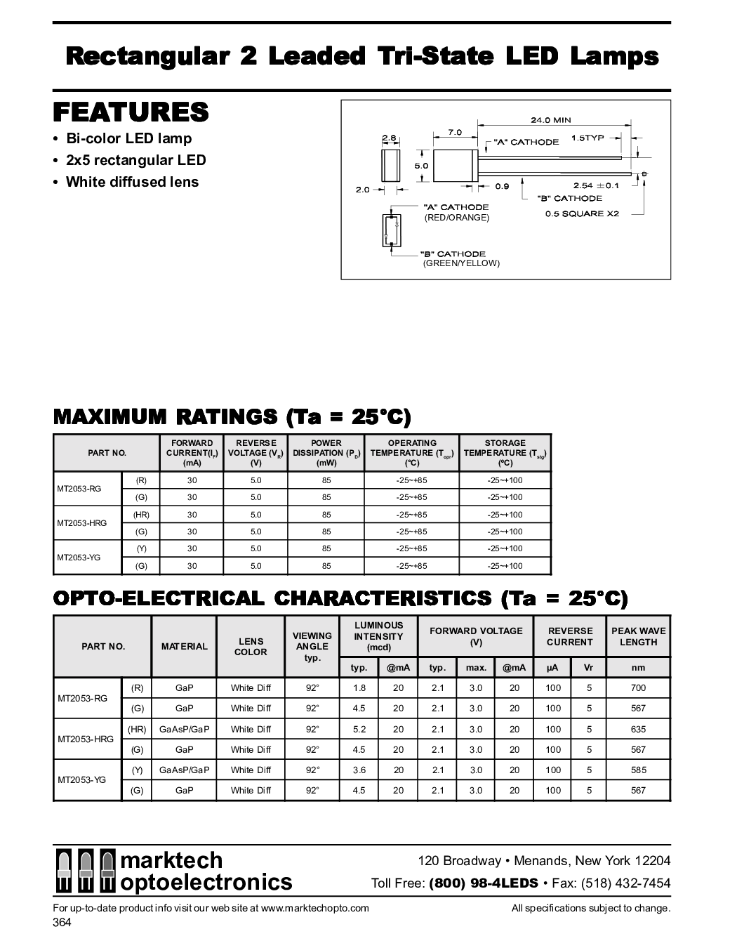 用于 最新 产品 信息 参观 我们的 web 现场 在 www.marktechopto.com全部 规格 主题 至 变更.