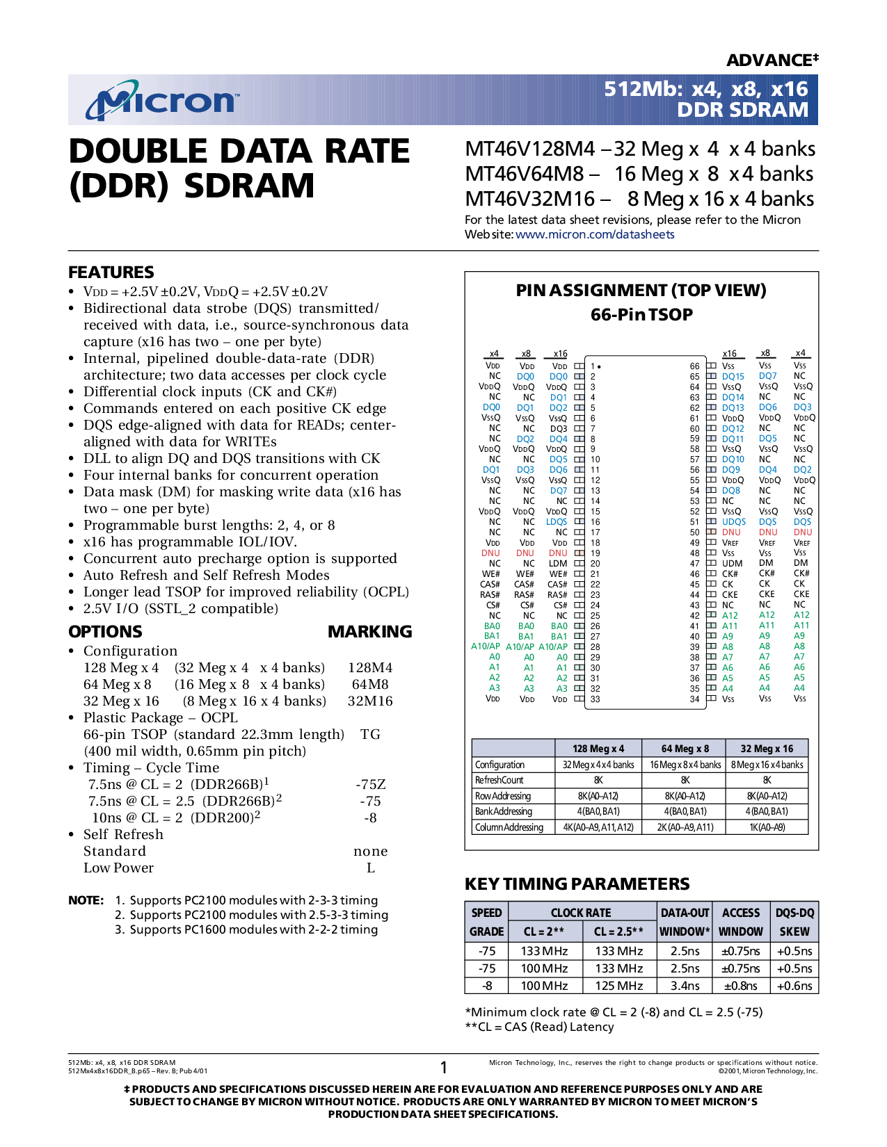512mb: x4, x8, x16 ddr sdram 微米 技术, 股份有限公司., 储备金 这 右侧 至 变更 产品 或 规格 无 通知.